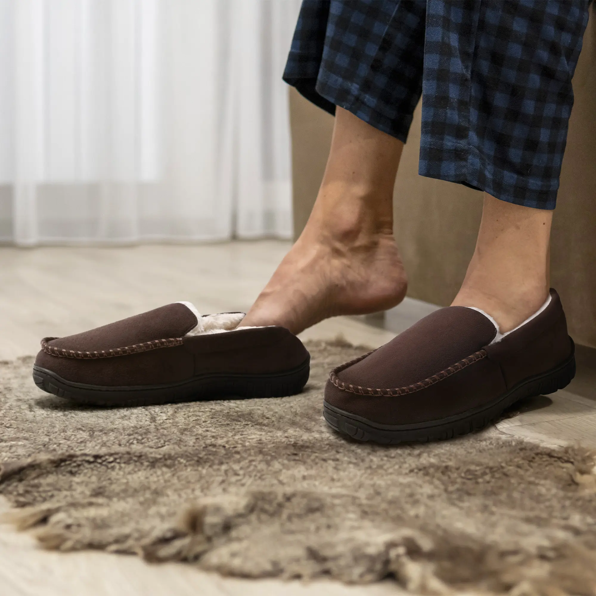 Men's Indoor Outdoor Anti-Slip Memory Foam Moccasin Slippers