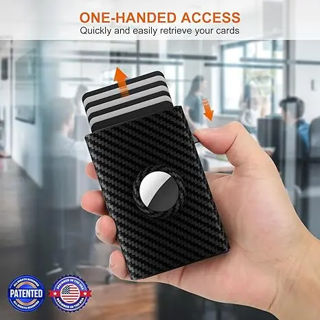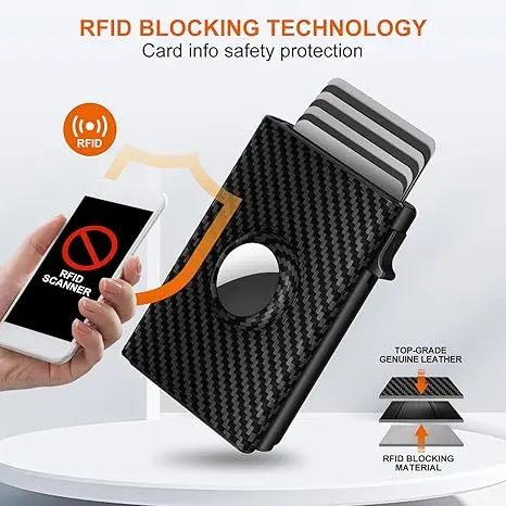 Mens Smart Wallet Card Holder for AirTag: Leather, RFID Blocking, Slim, Carbon Fiber, Minimalist - 6-9 Card Capacity | ID Window | Cash Slot perfect birthday