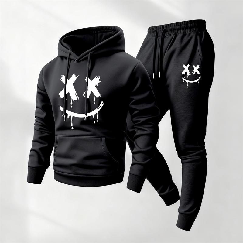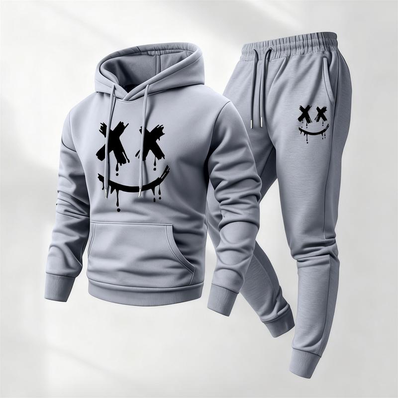 ·Title: Men's Smiling Face Printed Hoodie and Drawstring Sweatpants Set