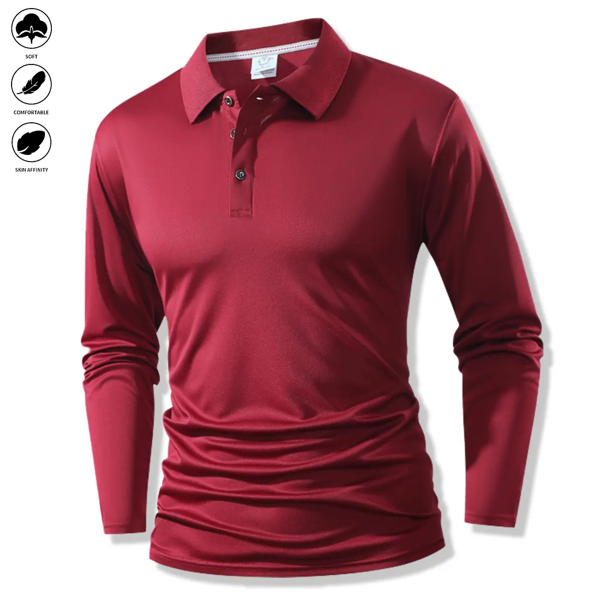 5PCS Men’s Soft Long Sleeve Polos – Solid Design & Skin-Affinity, Comfortable Fabric, TikTok Popular, Ideal for Casual Fall Outfits & Gifts for Him collar cuff design everyday commute