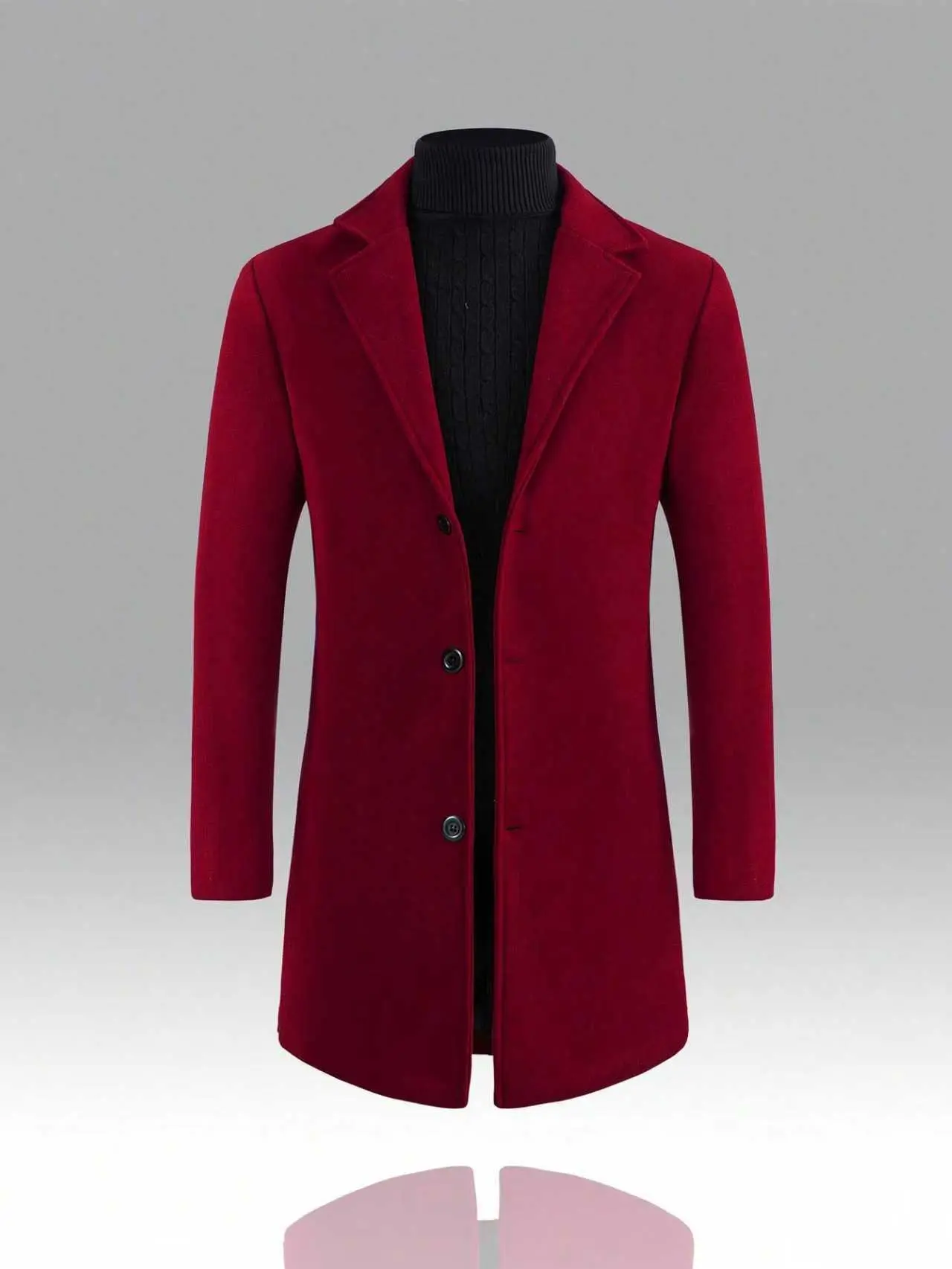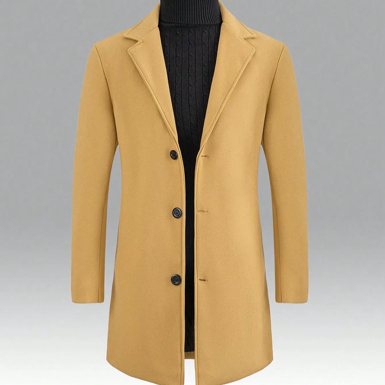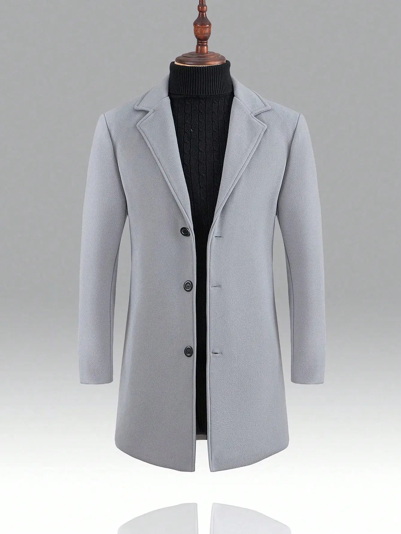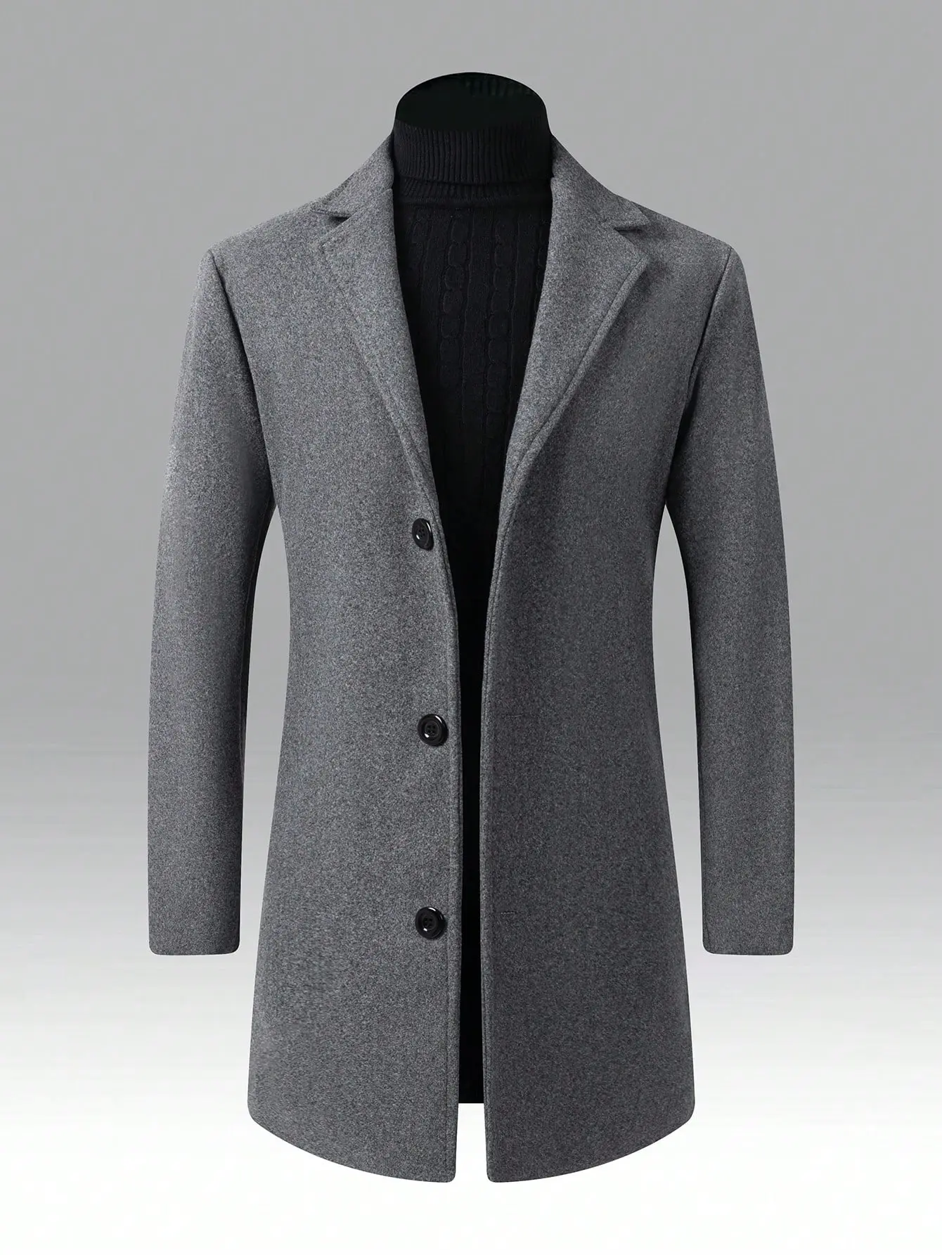 KZZ Men's Solid Button Front Lapel Neck Midi Coat