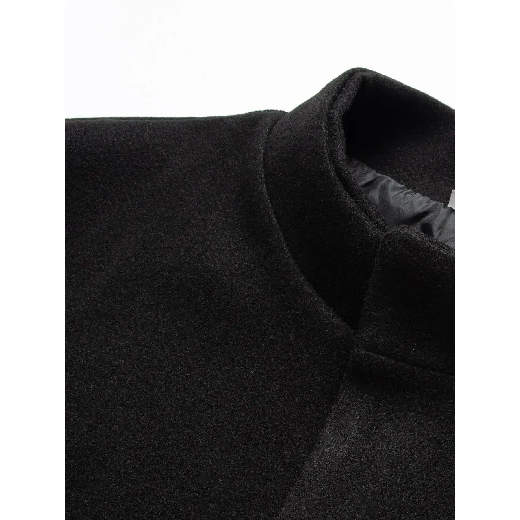 Men's Solid Button-Front Stand Collar Coat, Formal Overcoat, Regular Fit Casual Long Sleeve Outerwear for Fall & Winter, Men's Clothes for Daily Wear
