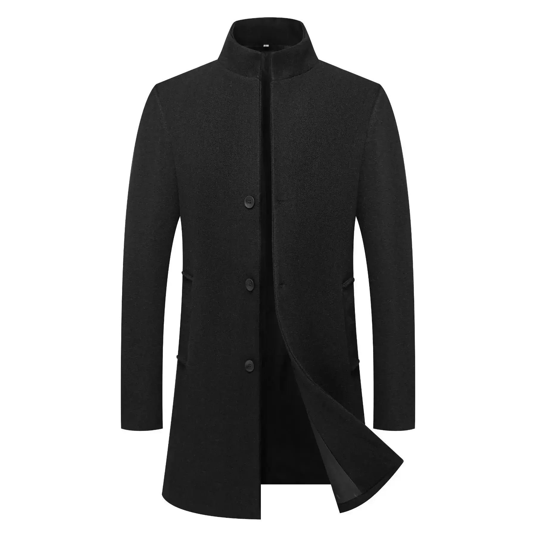 Men’s solid button-front stand-collar coat, formal overcoat, regular fit casual long-sleeve outerwear for fall and winter, men’s clothing for daily wear GARMENTARY