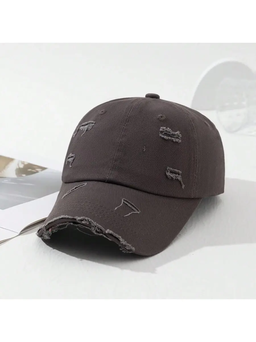VYNCE HAT1pc Men Solid Color Distressed Baseball Cap, Suitable For Spring And Summer Sun Protection And Daily Wear