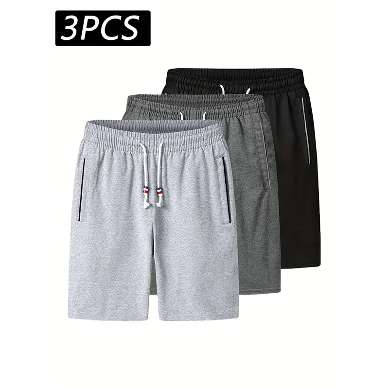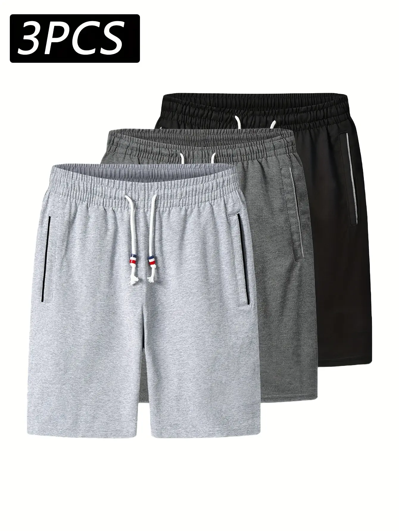 Men’s solid-color drawstring shorts, 3-pack — athletic joggers for outdoor running and casual travel pants