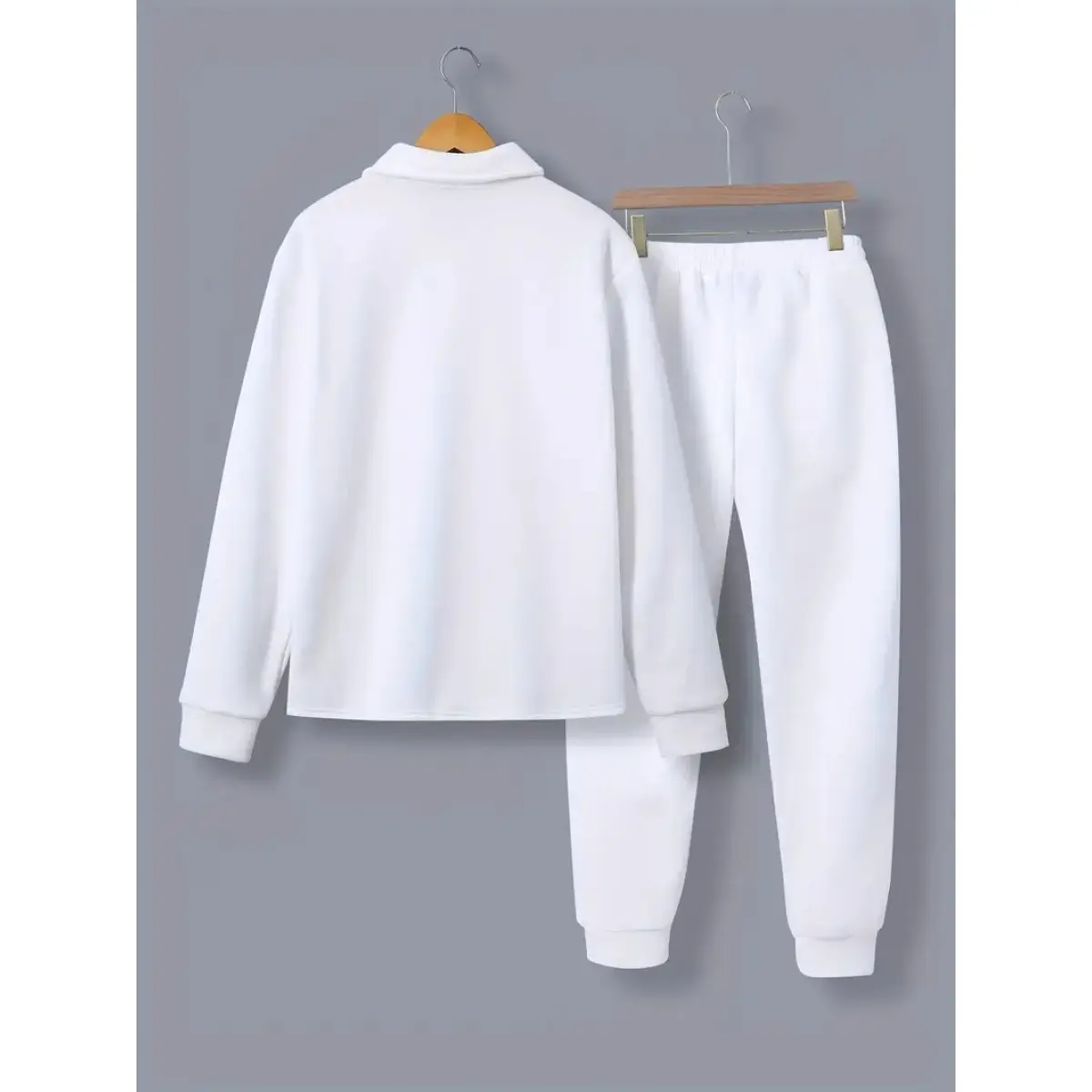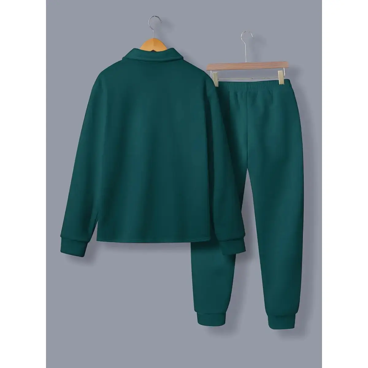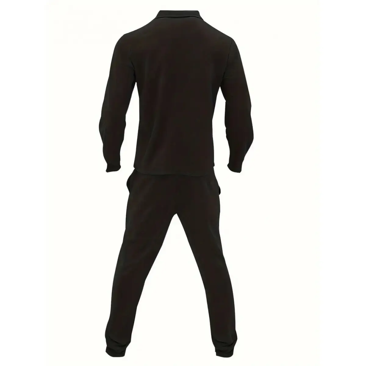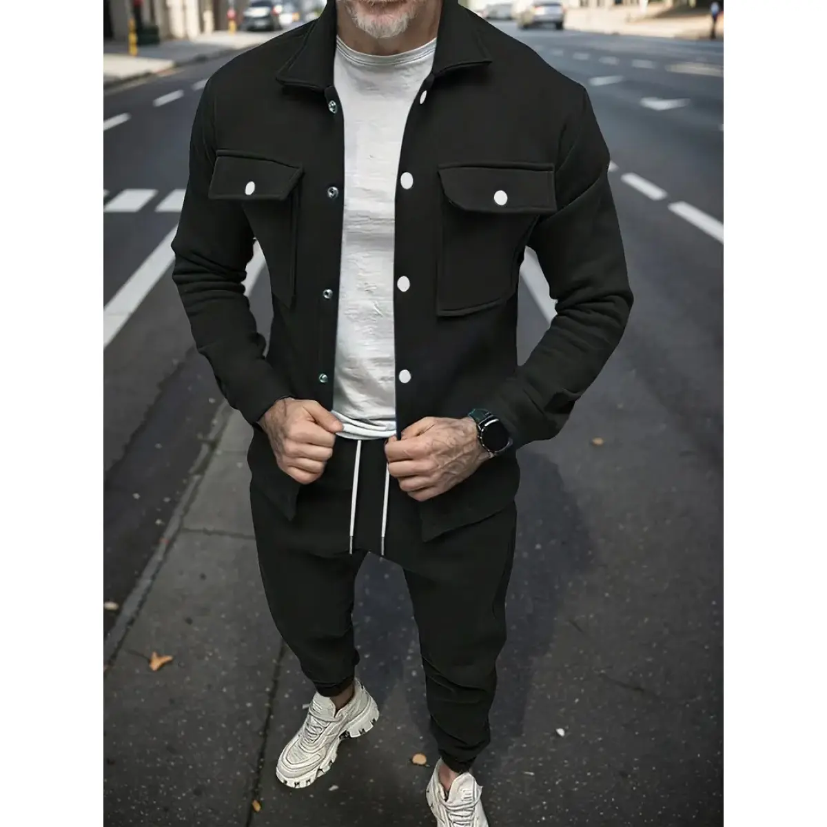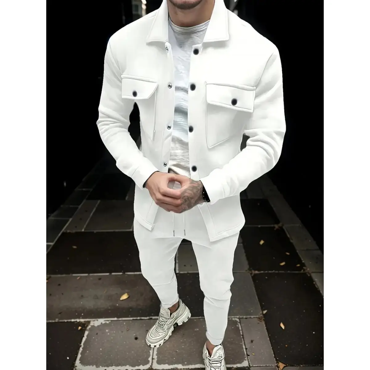 Men's two-piece set men's fashion solid color pocket open button lapel jacket and solid color set formal long sleeved