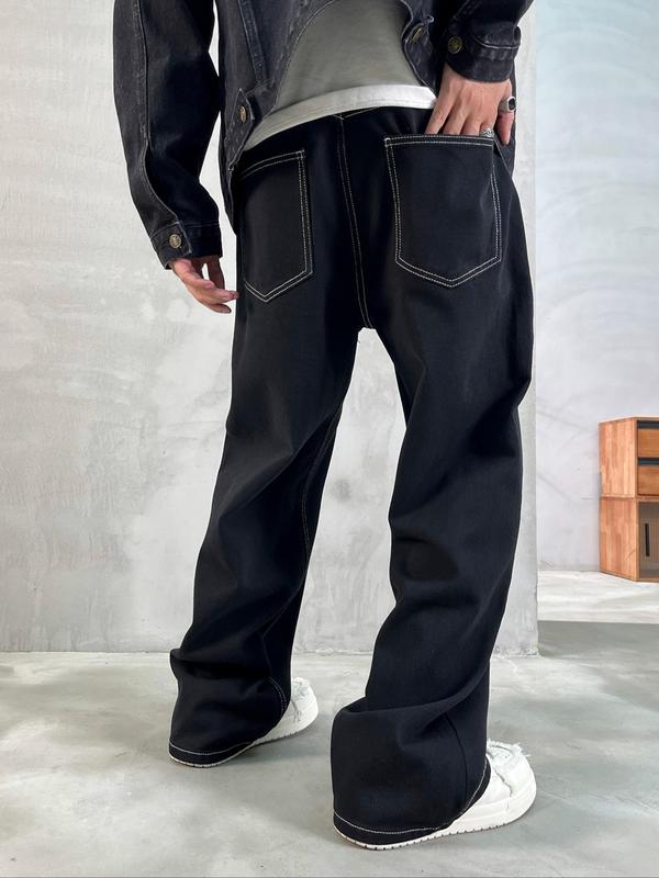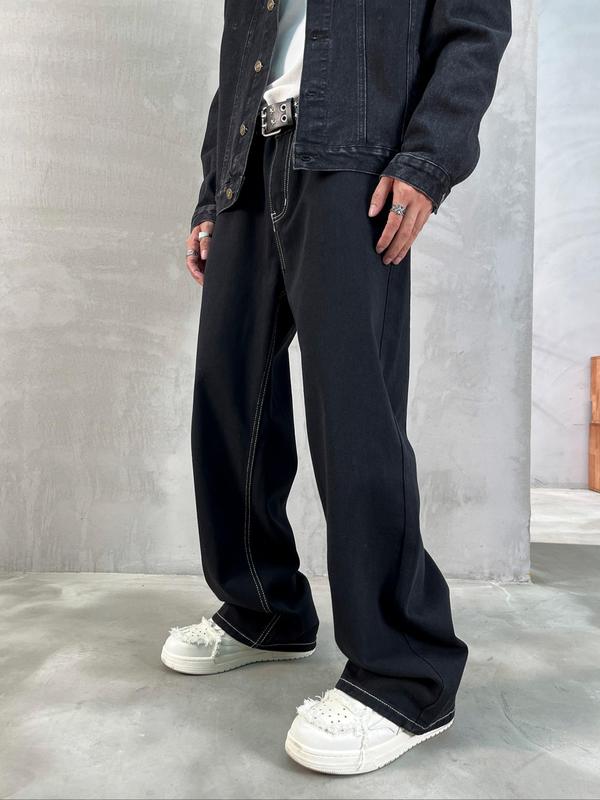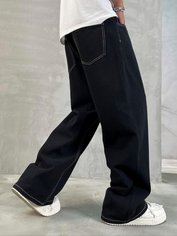 Men's Solid Color Loose Straight Leg jeans #loosestraight #jeans #autumnfashion #ootd