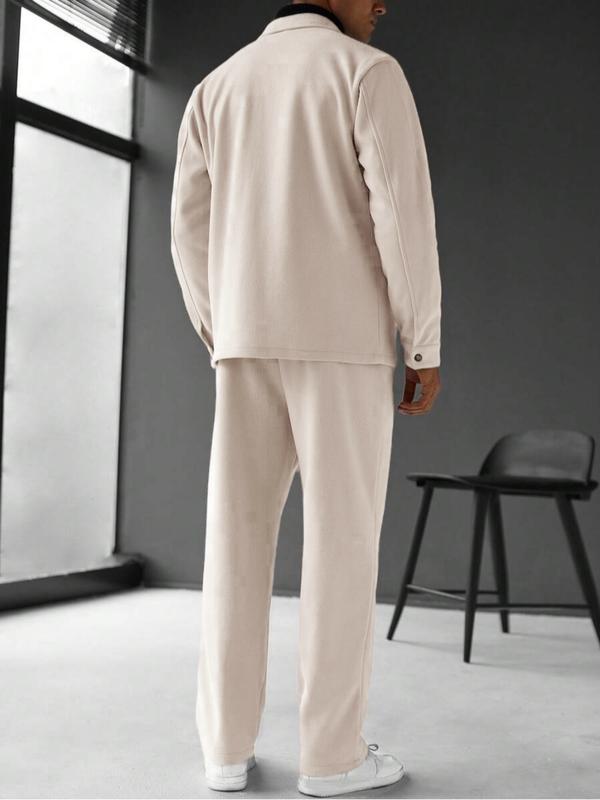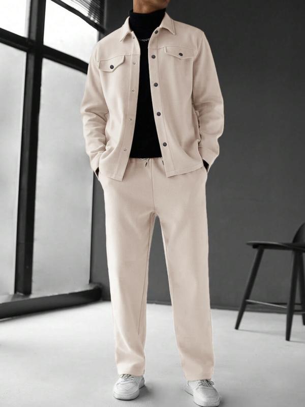 Men's Solid Color Pocket Jacket and Belt Waist Pants Sport Suit Regular Version Mature Business Style, Long Sleeve Jacket Collar Coat and Pocket Long Pants, Men's and Winter Sportswear, Sport Leisure Suit Casual Sportswear, Casual Suit Set #mensclothing #pjset #sweatsuitset #joggerset #womenssweatshirtset #menswears #tracksuitset #thermaljumpsuit #jumpsuitset #jeanjacketoutfit