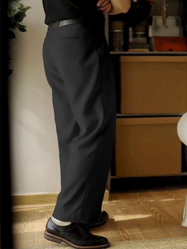 Men's Solid Color Pants without Belt, Loose Casual Comfy Straight Leg Trousers for Work Office Business, Men's Bottoms for All Seasons, Business Attire Clothes