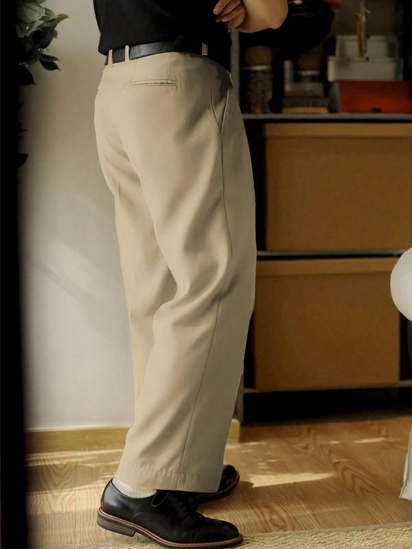 5. Men's Solid Color Pants without Belt, Loose Casual Comfy Straight Leg Trousers for Work Office Business, Men's Bottoms for All Seasons, Business Attire Clothes