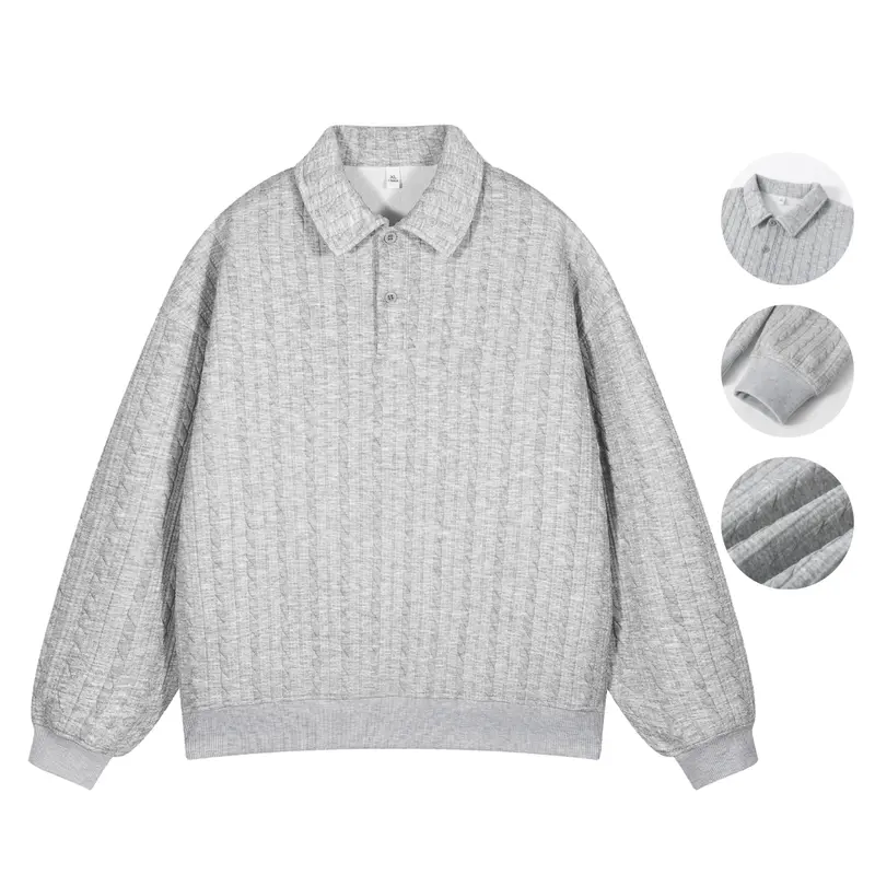 Men's solid color twisted texture design half grid shirt collar sweater, suitable for spring and autumn seasons, pullover