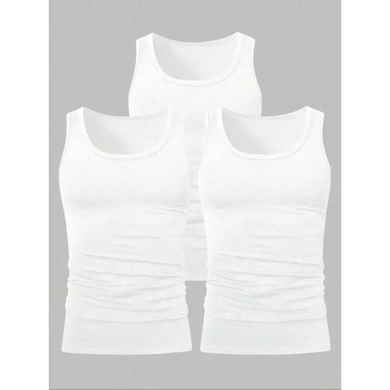 Men's Solid Tank Top, Casual Comfy Breathable Sleeveless Top for Daily Wear, Men's Clothes for Summer, Vest Gamis, Sleeveless Tank Tops