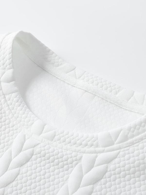 Men's Solid Textured Patched Tee & Drawstring Waist Shorts Set, Regular Fit Casual Round Neck Short Sleeve T-shirt & Pocket Shorts, Men's Summer Clothes