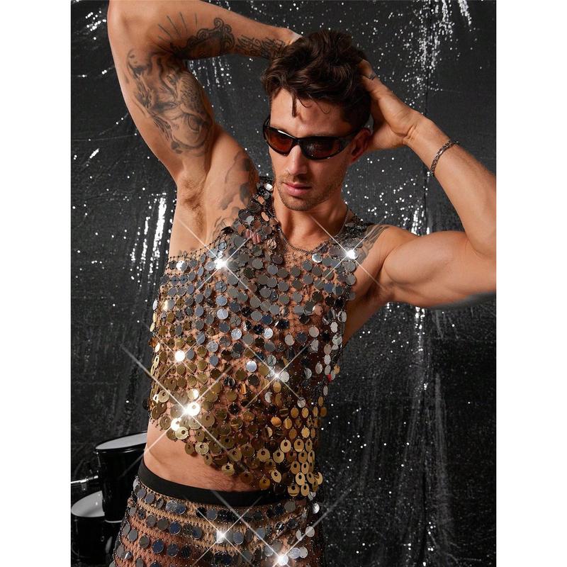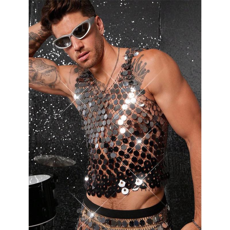 Crafted with shimmering rhinestone detailing over a sheer mesh base, this tank catches every light in the club. Designed for nightlife, parties, and stage performances, it delivers instant confidence and bold energy.