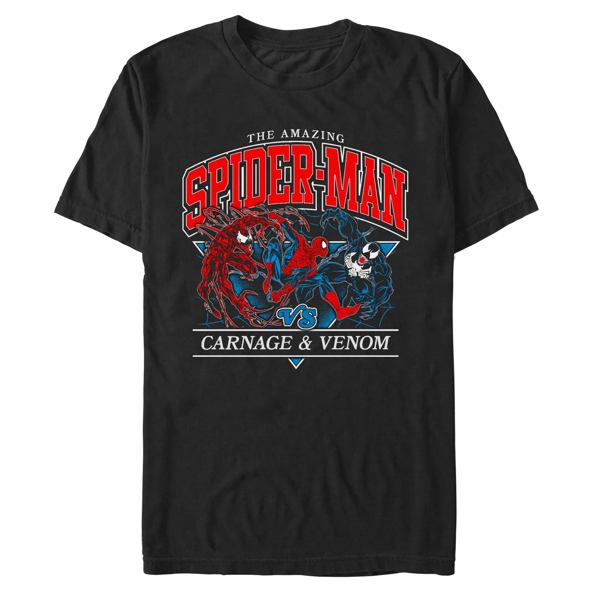 For once, Peter Parker's spider-sense isn't tingling because of danger, it's tingling because of how awesome the officially licensed Marvel Spider-Man is! This men's The Amazing vs Carnage and Venom t-shirt features an awesome design with Spider-Man fighting against Venom and Carnage. Put in the maximum effort and get Marvel-ous as you embrace your inner hero today and make a bold statement with styles that capture the thrill of the Marvel universe!
