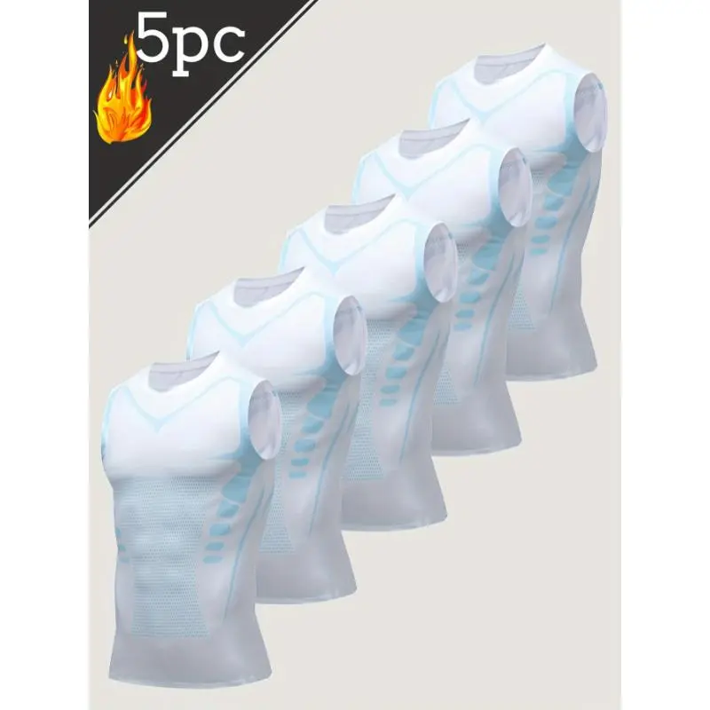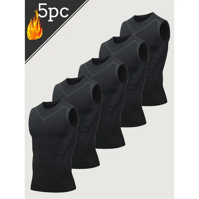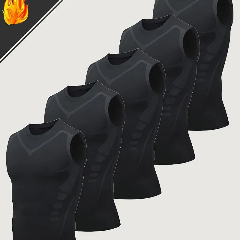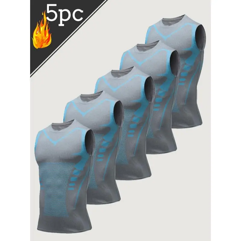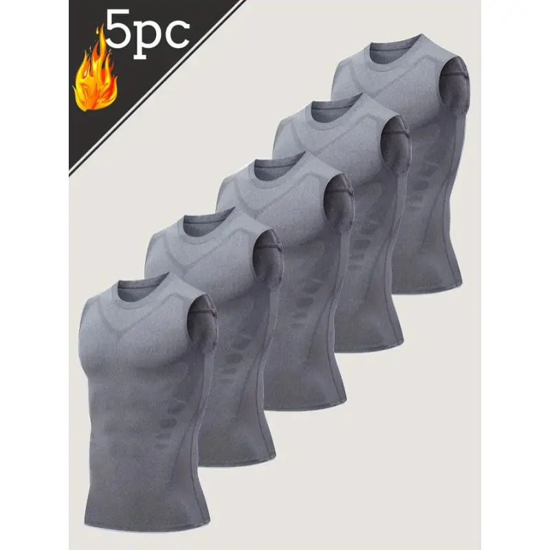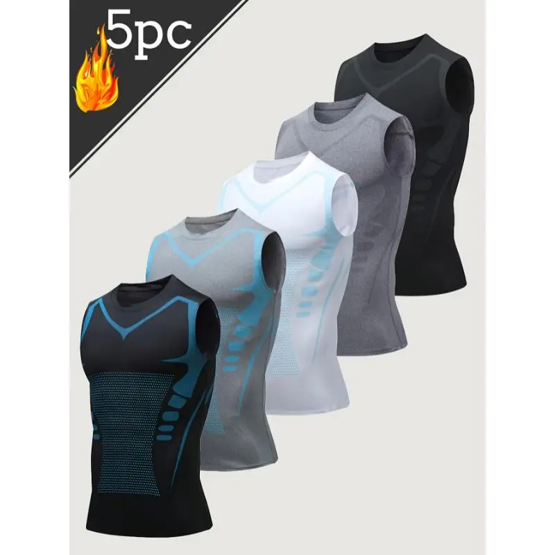 5. 5pcs Men's Sports Sleeveless Tank Top Quick Dry Breathable Crossover Slimming Tight Stretchy Compression Top