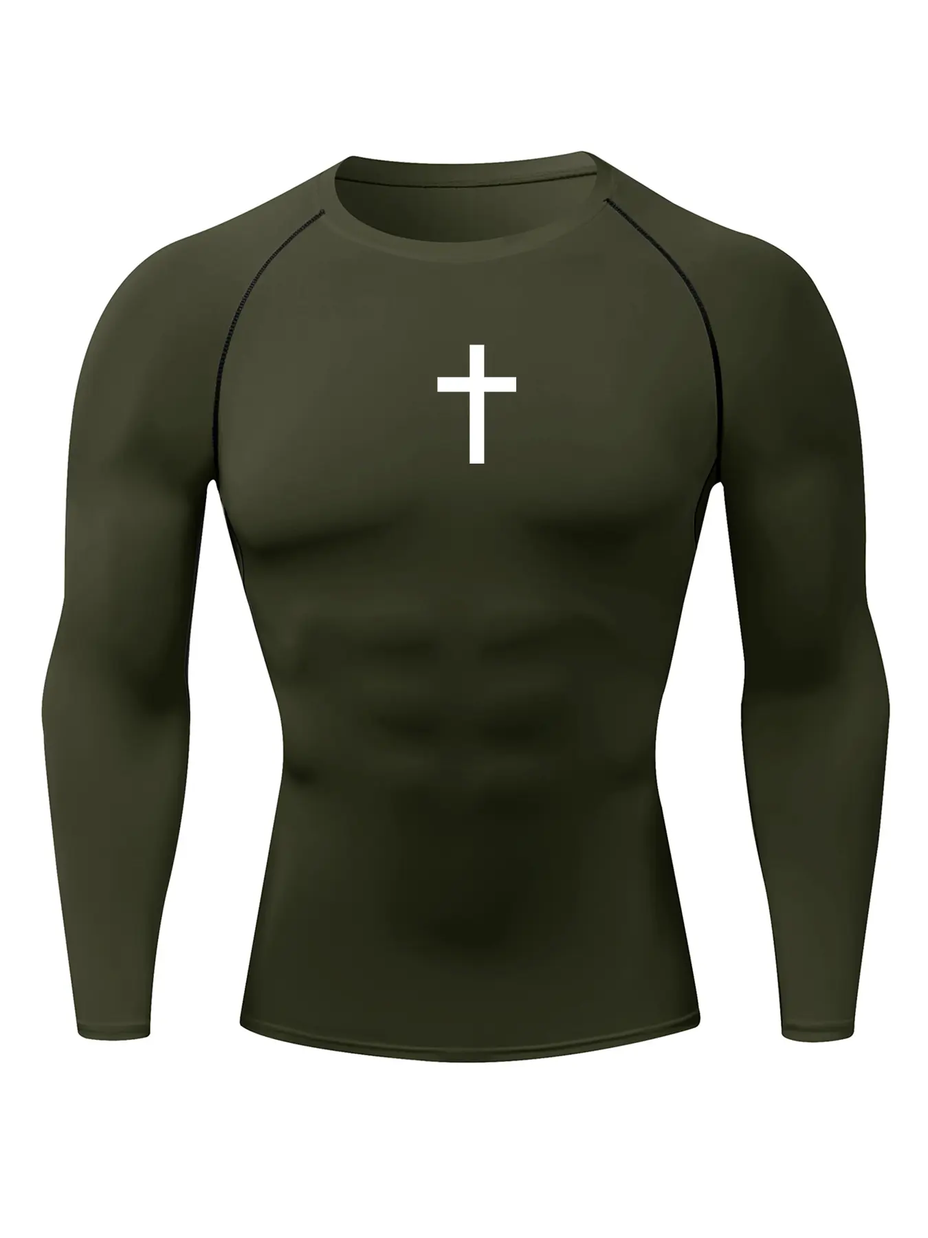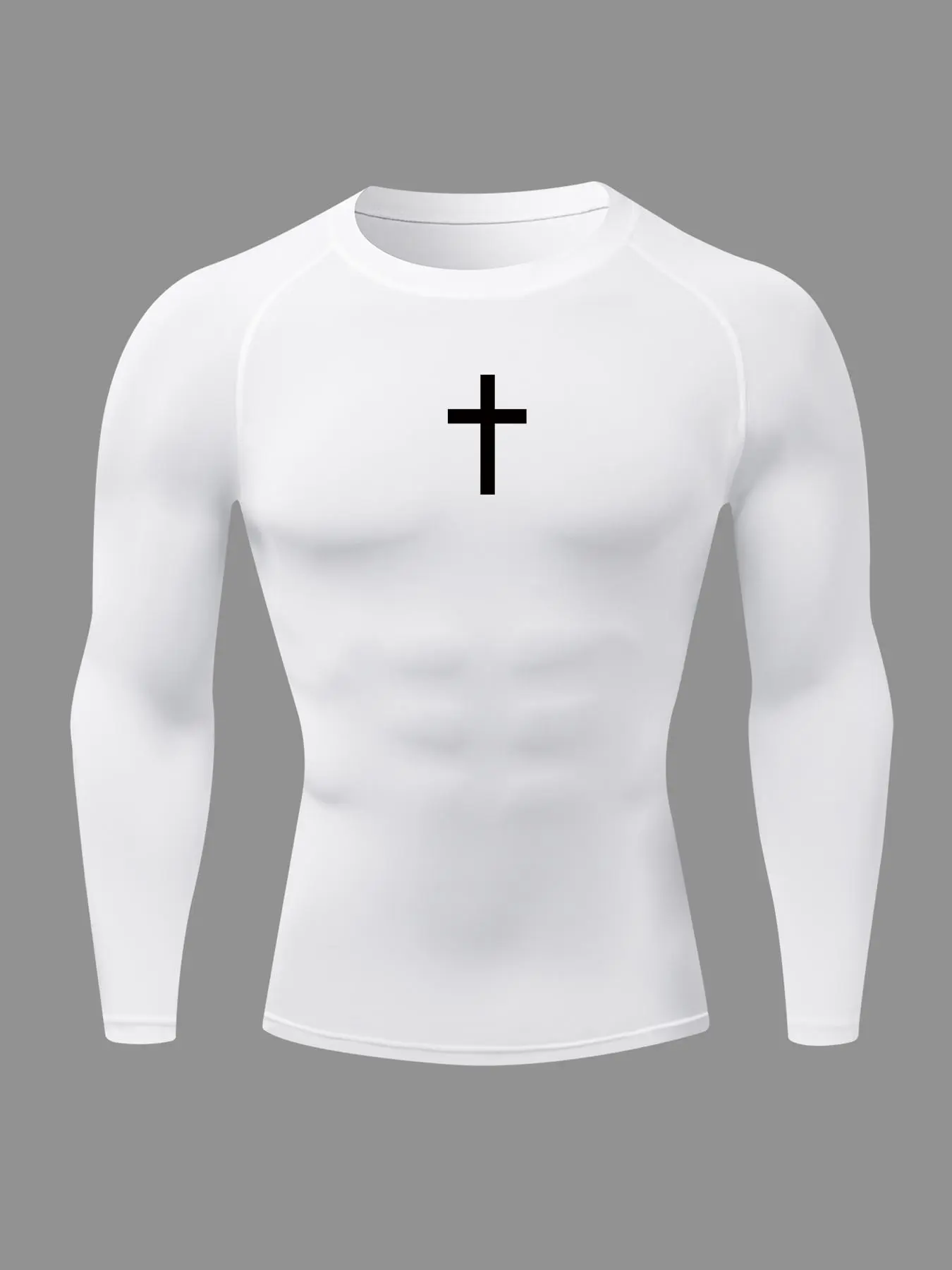 Men's Cross Print Round Neck Sports Tee, Tight Sporty Quick Drying Breathable Long Sleeve Comfort Color T Shirts #Print  #Fitness  #Comfort #sports  #breathable