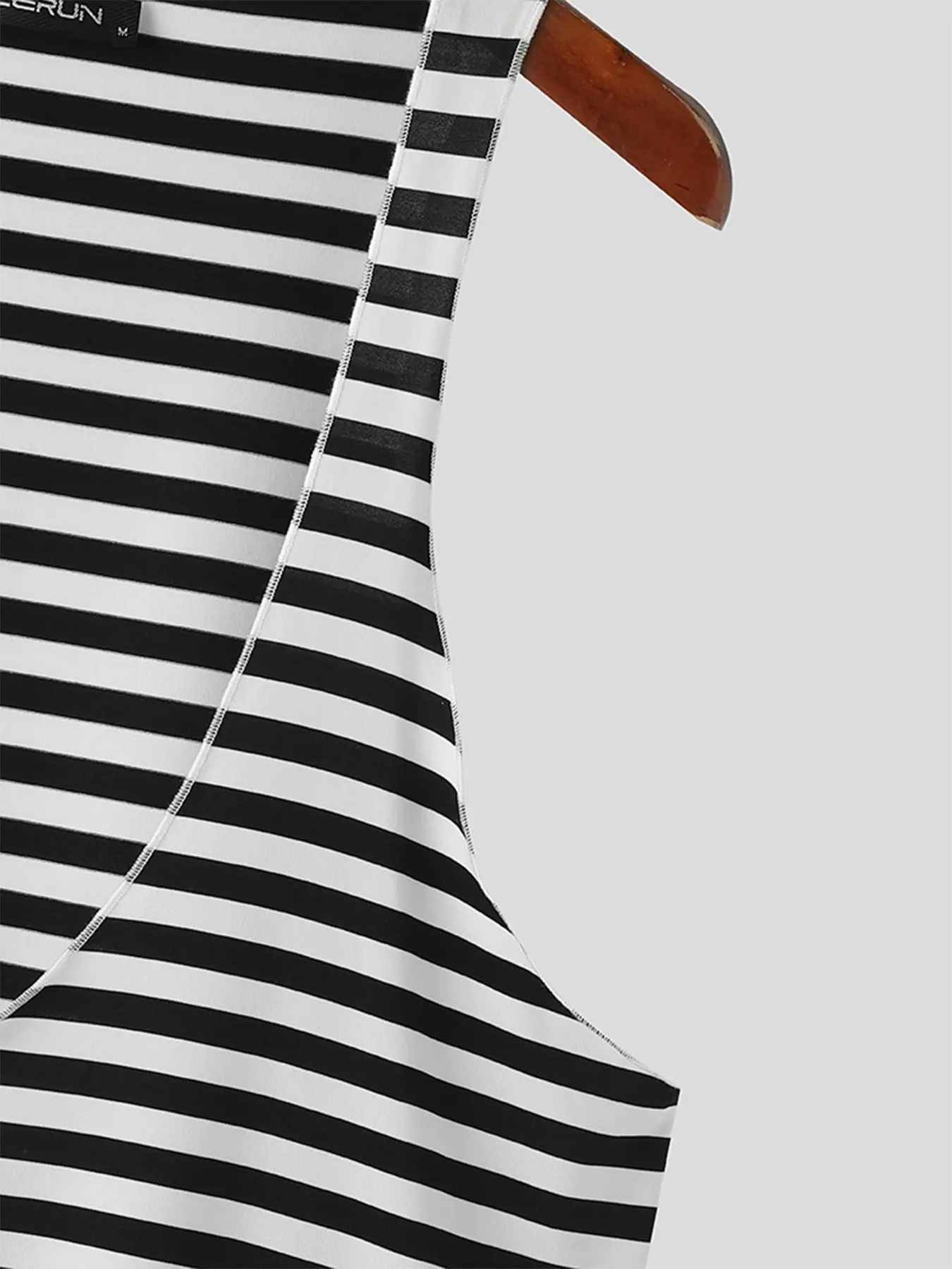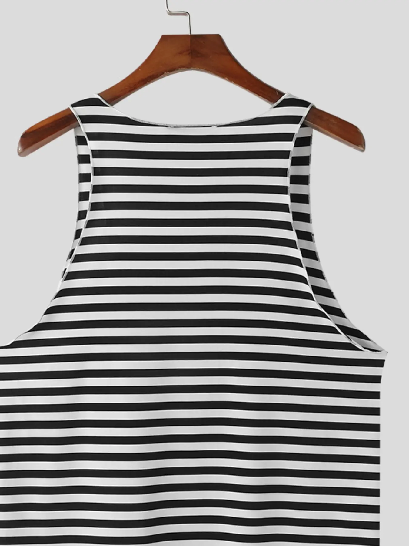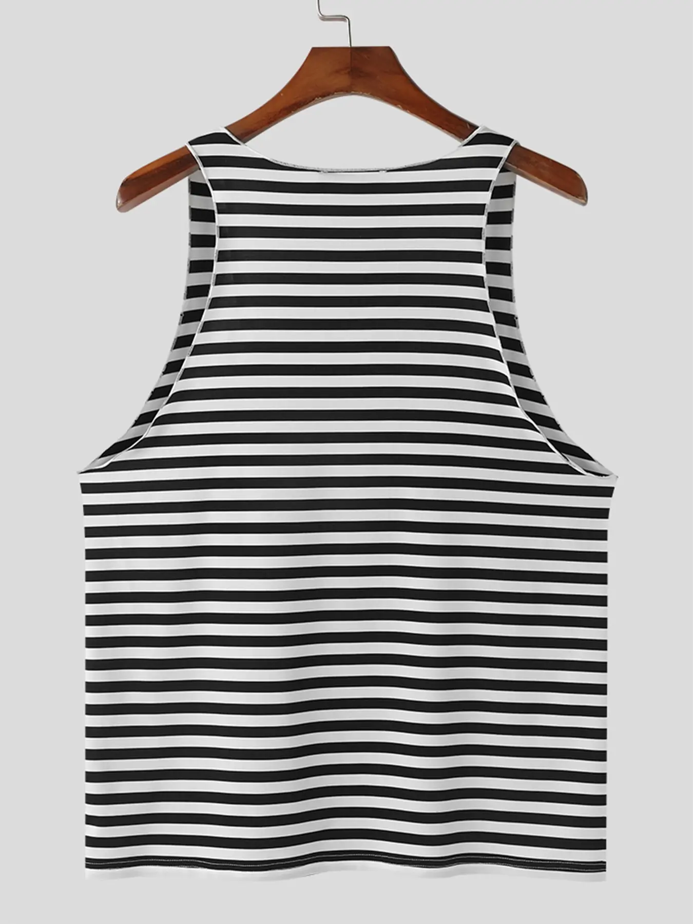 Fabric Material:95%Polyester+5%Spandex Color:Black Suitable Type:Fit Style:Basics Occasion:Leisure Pattern:Stripe Thickness:Moderation Product Description:Men's stripe sleeveless tops. Label: Yes