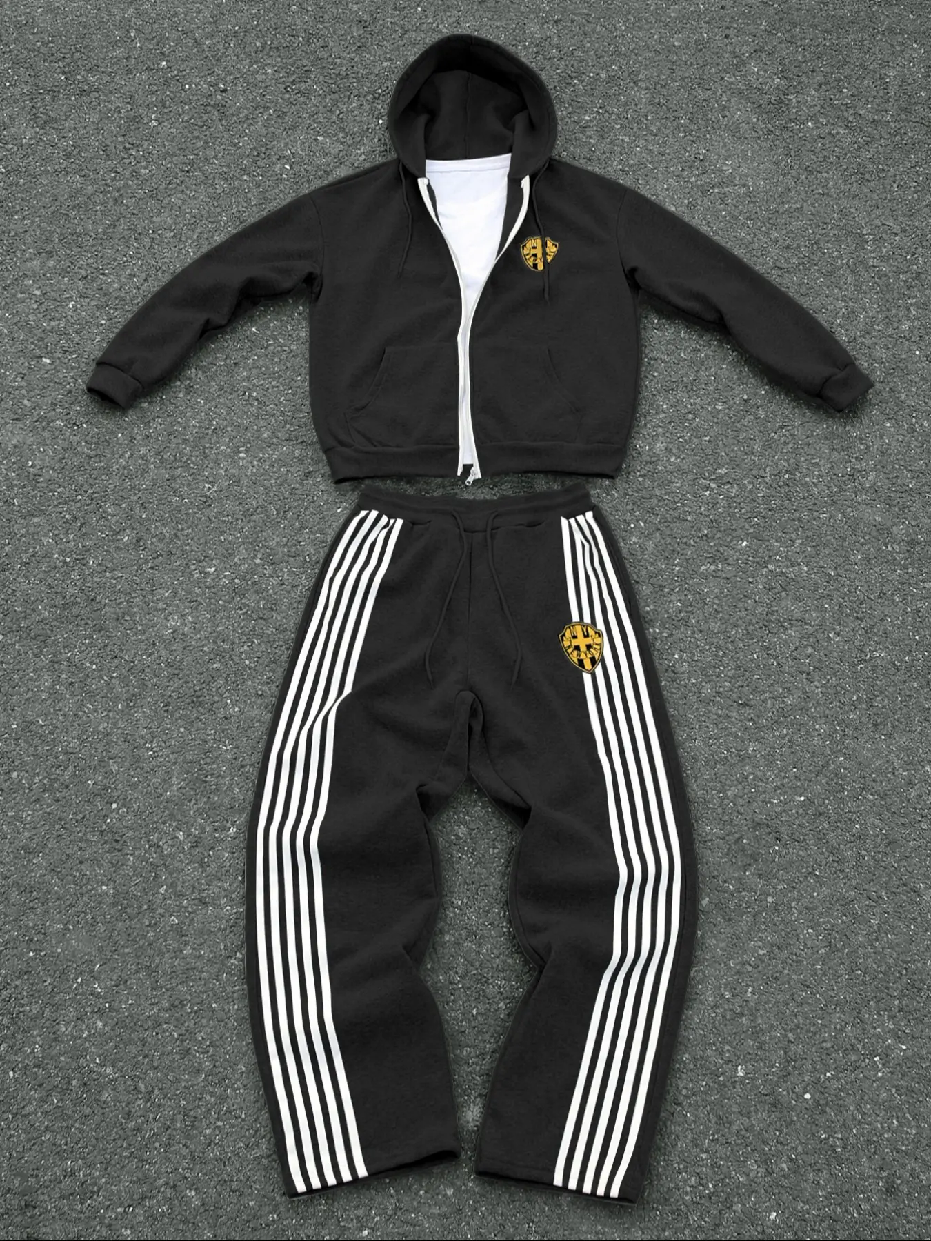 【Full Zip Design】: Featuring a full zip closure on the hooded sweatshirt for easy wear and adjustability, enhancing practicality.