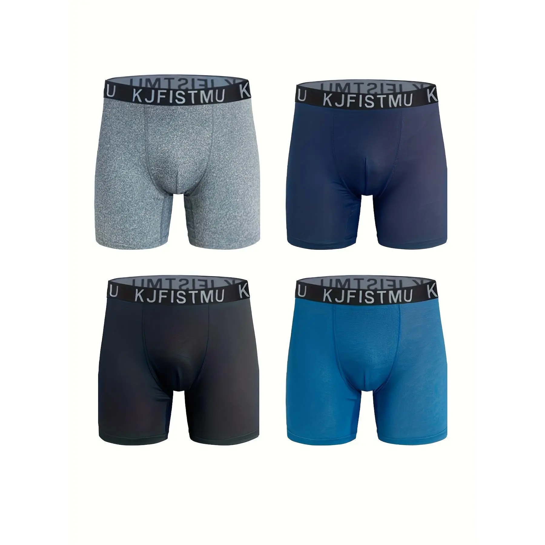 5. Set Of 4 KJFISTMU Men's Solid Color Simple Sport Basic Boxer Briefs, Quick Dry, Breathable Polyester & Super Stretch, High Stretch Knit Fabric, Elastic Waistband, Everyday Comfortable Underwear for Running & Fitness