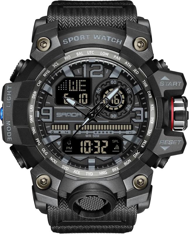 ·❤Multifunction: 1. Analog and digital dual dial support two different timezone 2. Alarm 3. LED Back Light(show time clear in the dark ) 4. Date 5. Stop Watch 6. 12/24H format option 7. Shock Resistant 8. Light Weight .Those funktions make it perfect for all kind of sport and daily use