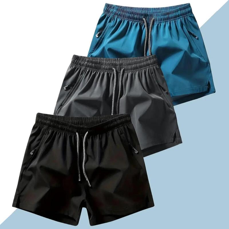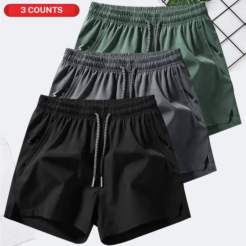3PCS Men's Plain Fashion Sports Shorts with Drawstring and Zipper Pockets, Suitable for Summer Training, Daily Wear, Elastic Drawstring Waistband with Zipper Pockets, Lightweight and Breathable Summer Workout Pants for Outdoor Activities and Casual Wear