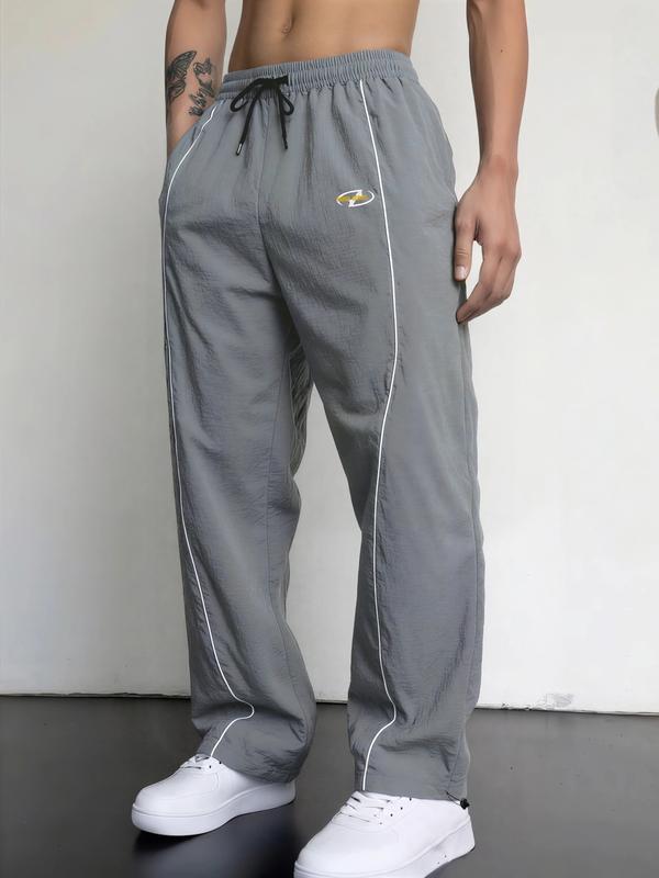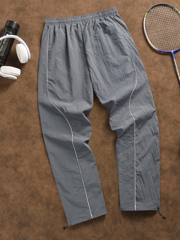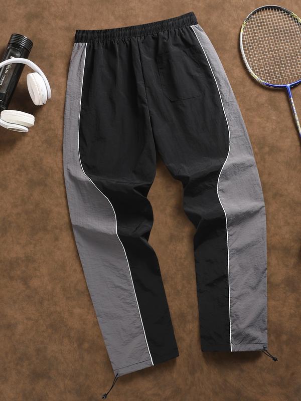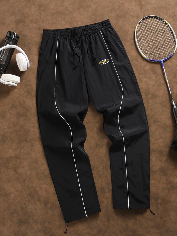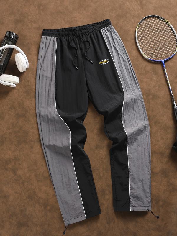 Men's Fashion Casual Sports Pants, Striped Colorblock Design, Letter Print, Nylon Fabric, Lightweight Breathable, Perfect for Daily Wear