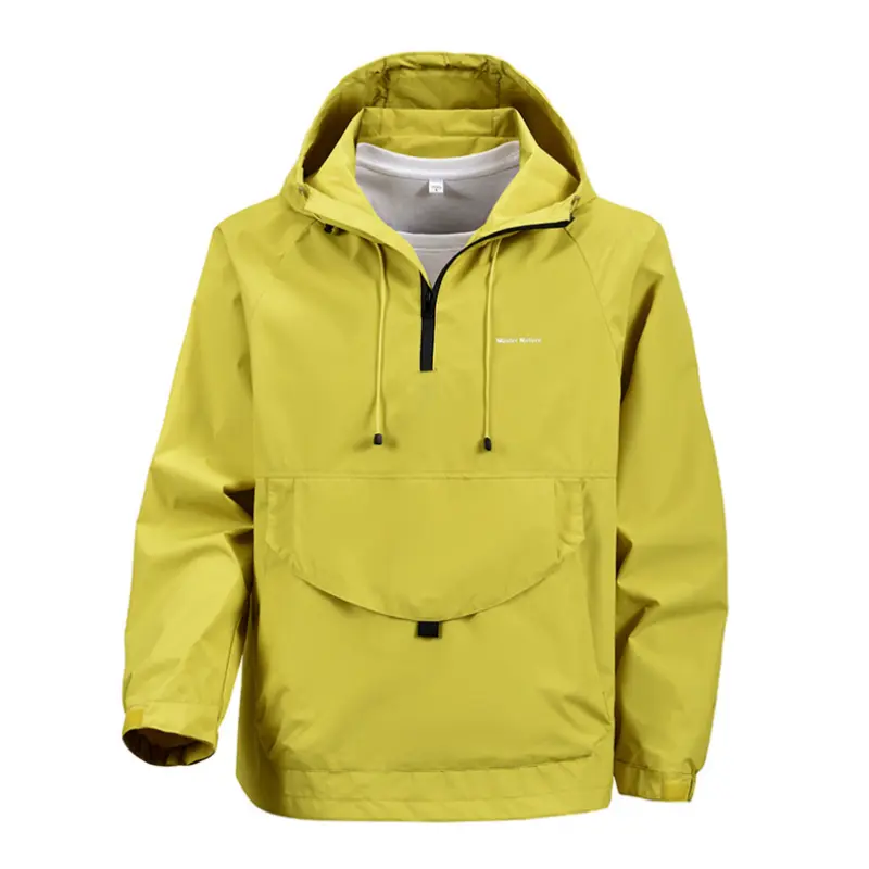 This men's sports jacket is perfect for spring and autumn.Featuring a half zipper and a hood, it's perfect for outdoor activities.The jacket is both windproof and waterproof, keeping you protected whether you're climbing mountains or fishing.It's a new autumn jacket, designed for men who need a versatile outdoor sports suit.