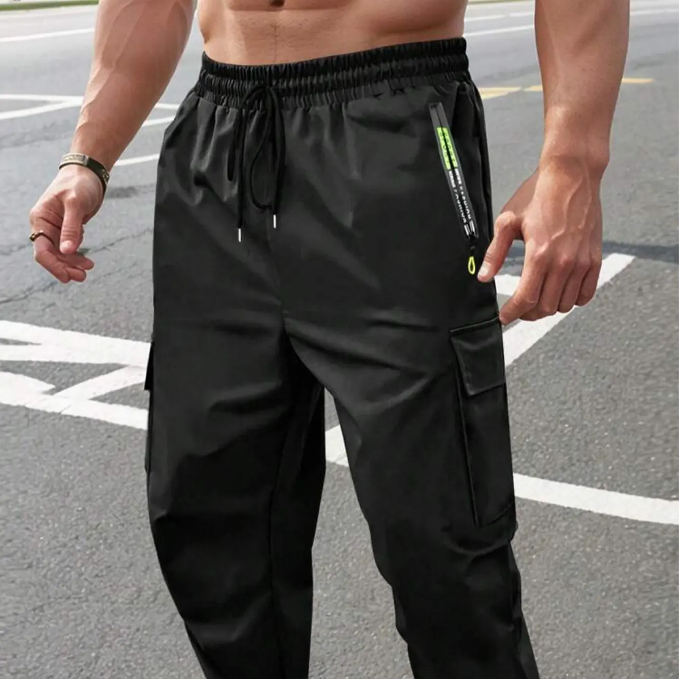 Men's Spring/Fall Zipper Pocket Work Pants, 3 Pack - Stylish Large Pockets with Elastic Waistband, Casual Outdoor & Everyday Wear Tight-Fitting Long Pants Activewear Sportswear Athletic Trouser pantalones para hombre pants for men cargo pants for men