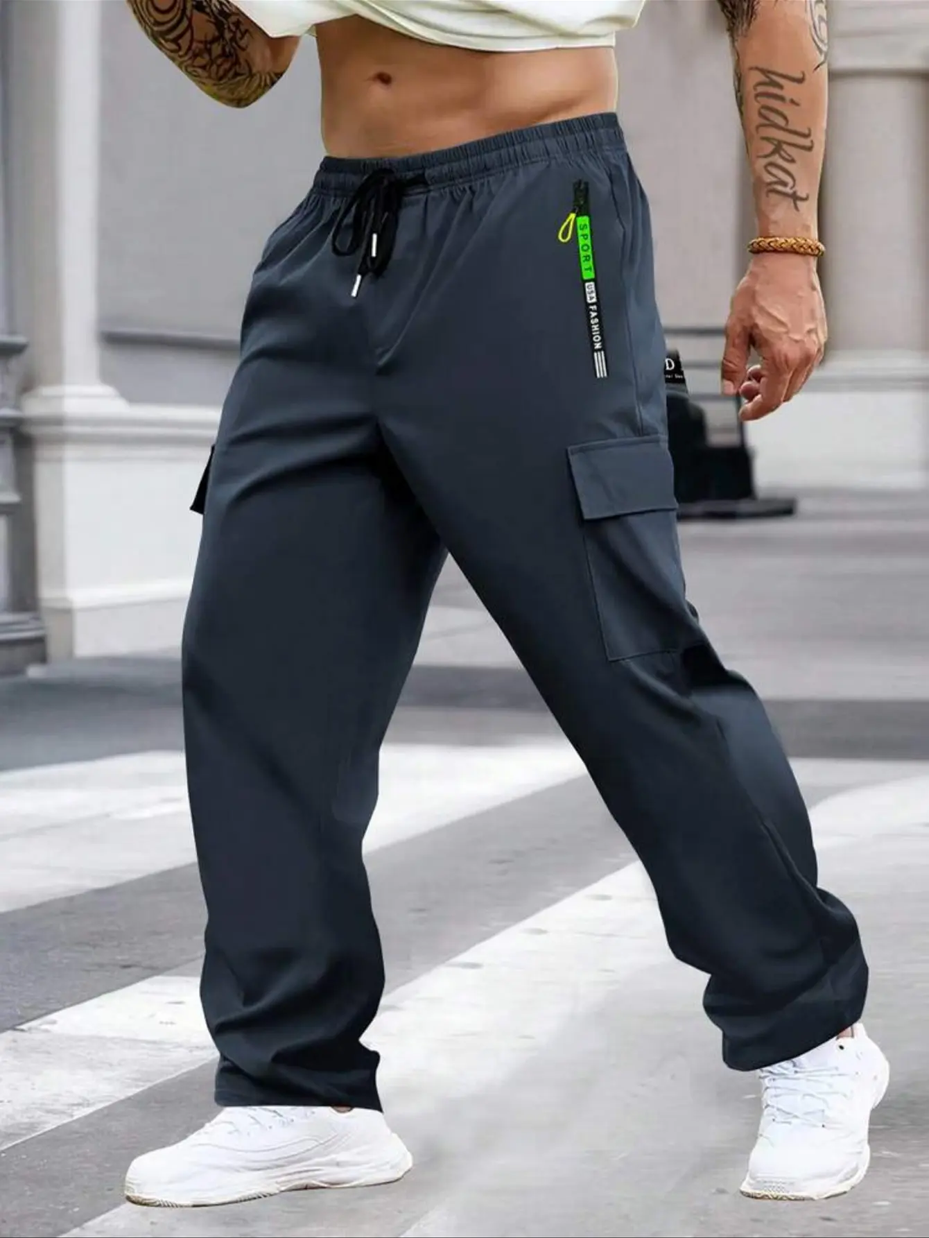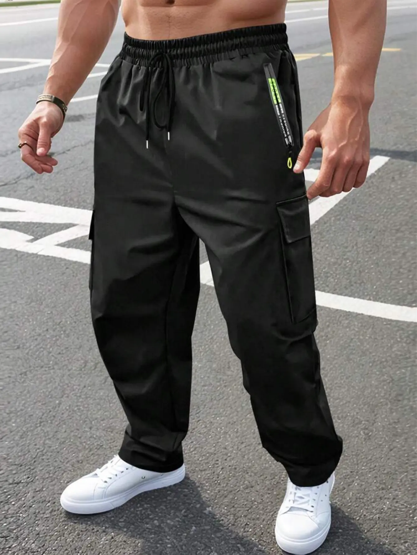 ·These work pants feature large pockets with a zipper closure. 🌿