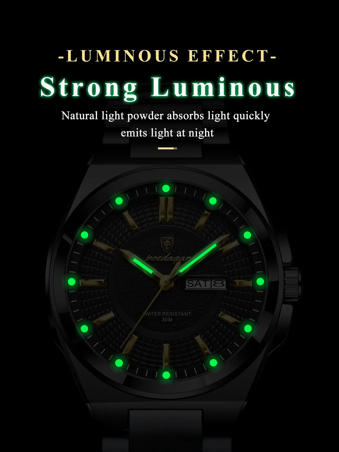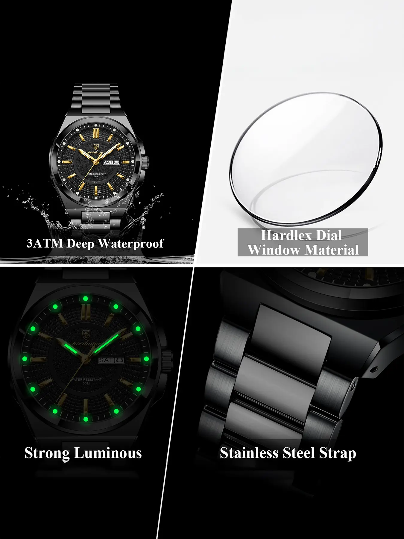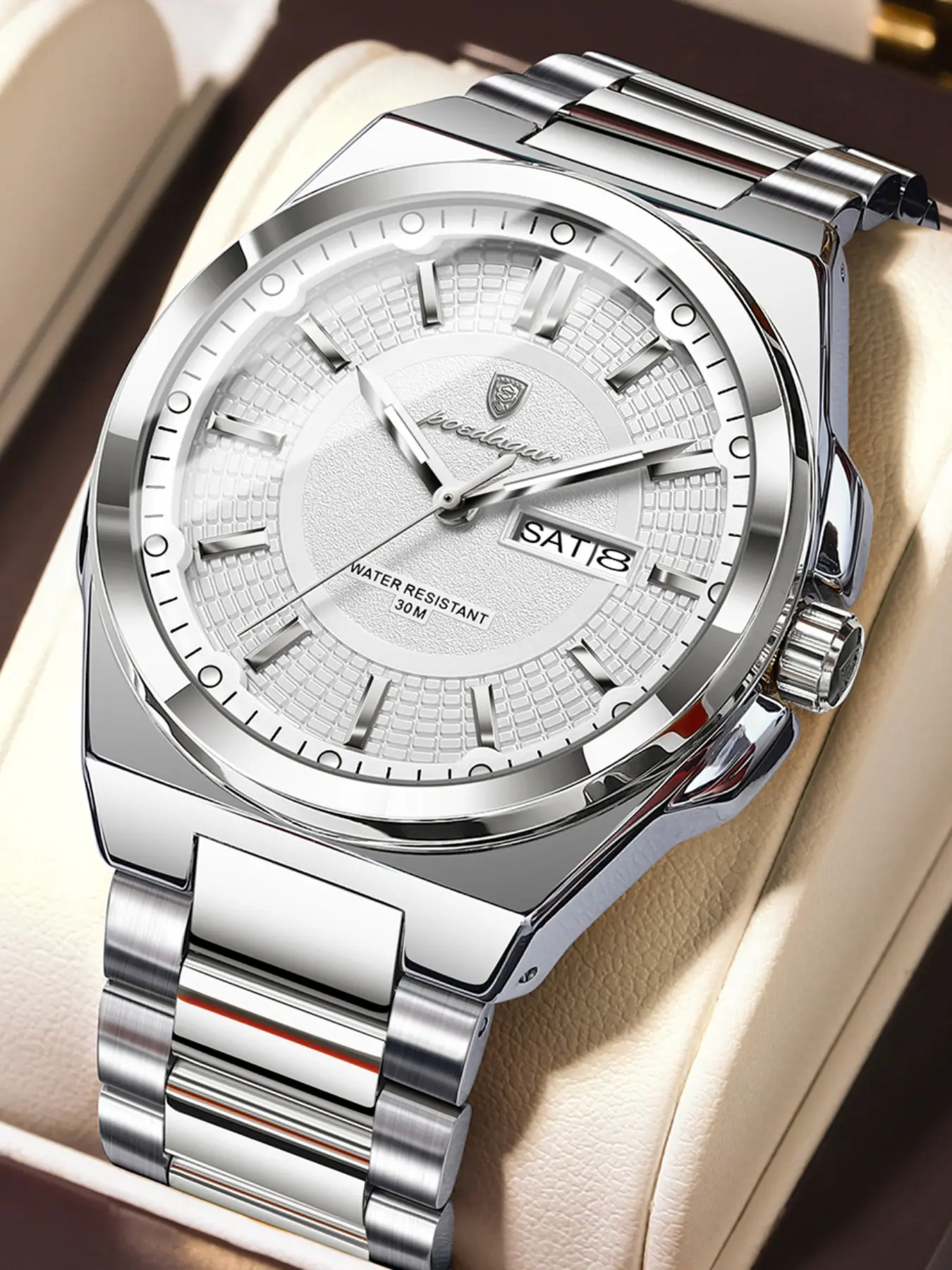 Poedagar Top Business Men's Watches, Stainless Steel Waterproof Luminous Man Watch, Date Week Display, Casual Fashion Quartz Wristwatch, Casual Trendy Wristwatch, Stylish Watch