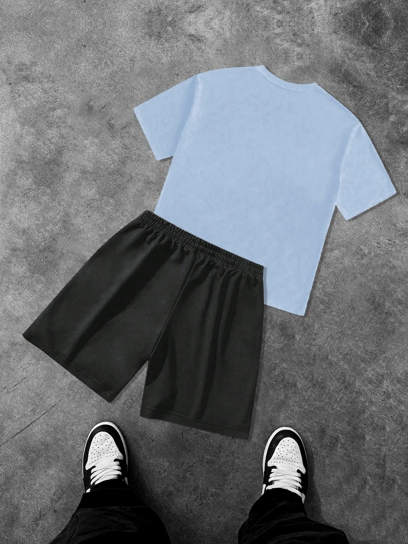 【Two-Piece Set】: Includes both a T-shirt and drawstring shorts, providing matching options that simplify outfit selection.