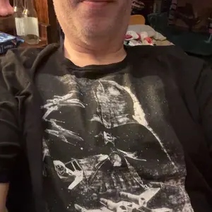 See a Sith Lord in a whole new light with the Star Wars Static Darth Vader Black T-Shirt. A distressed static black and white print on the front of this unique black Star Wars tee shirt shows Darth Vader's helmet, TIE Fighters, X-Wing Fighters, and the Star Wars logo.