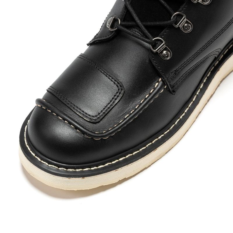 Experience unmatched comfort and durability with our men's wedge work boots. Perfect for motorcycle riding and walking, these boots ensure a secure fit with an extra strap on the toe area. They offer a normal width for a comfortable fit. The steel shank protects your feet from wear and tear. Upgrade your footwear today!