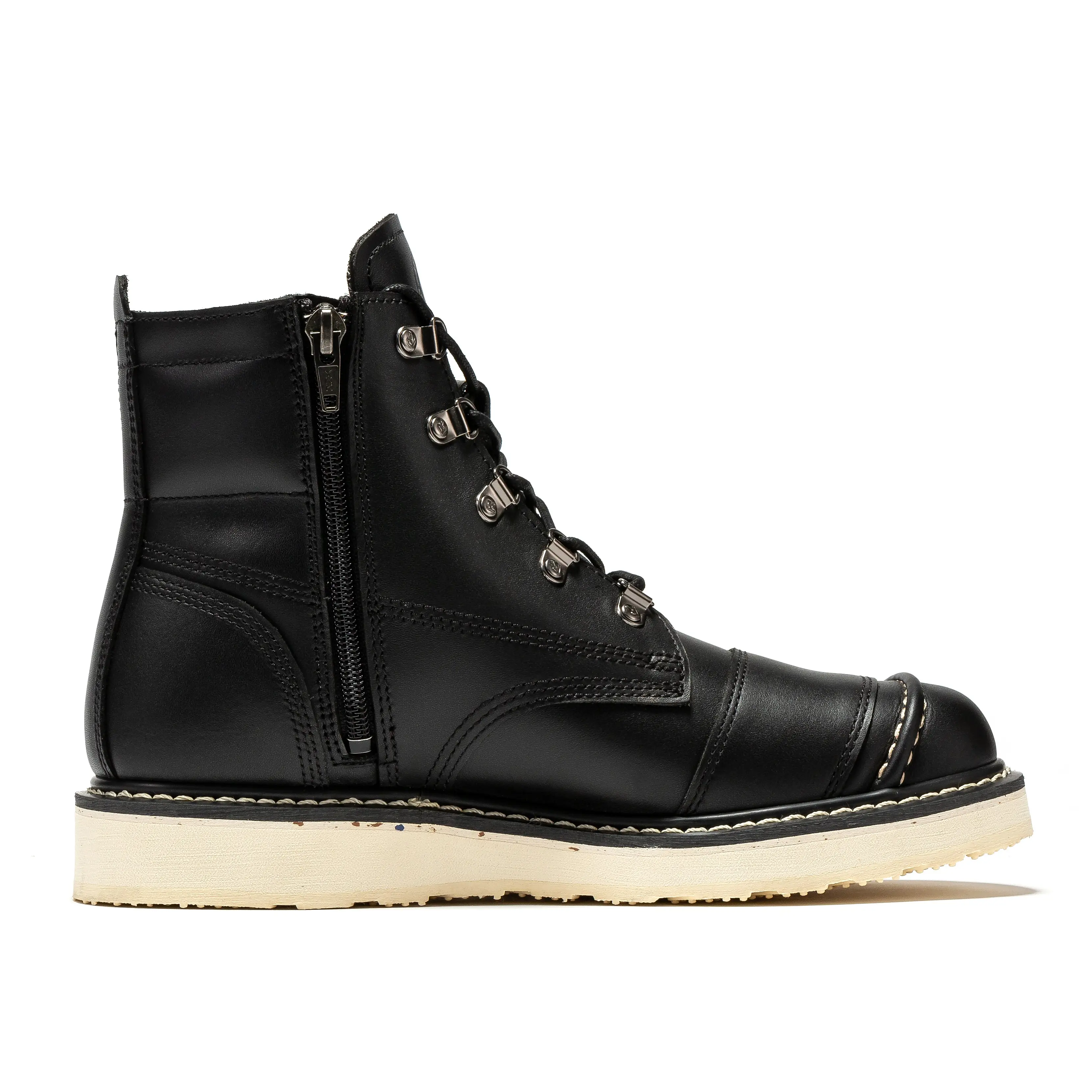 Goodyear Welt construction guarantees high-quality leather that is water-resistant and durable. Oiled Crazy Horse leather ensures reliability. The side zipper allows for easy on and off, saving time and effort. Handcrafted by skilled boot makers, these boots guarantee top-notch quality.
