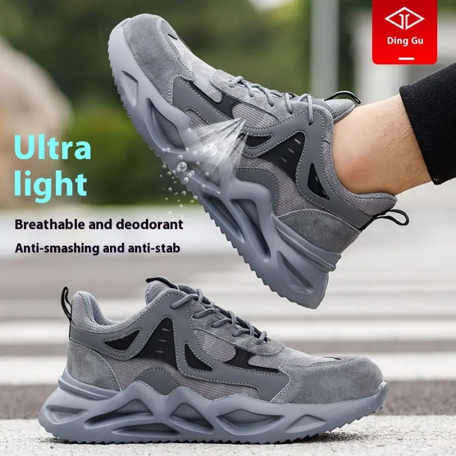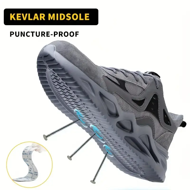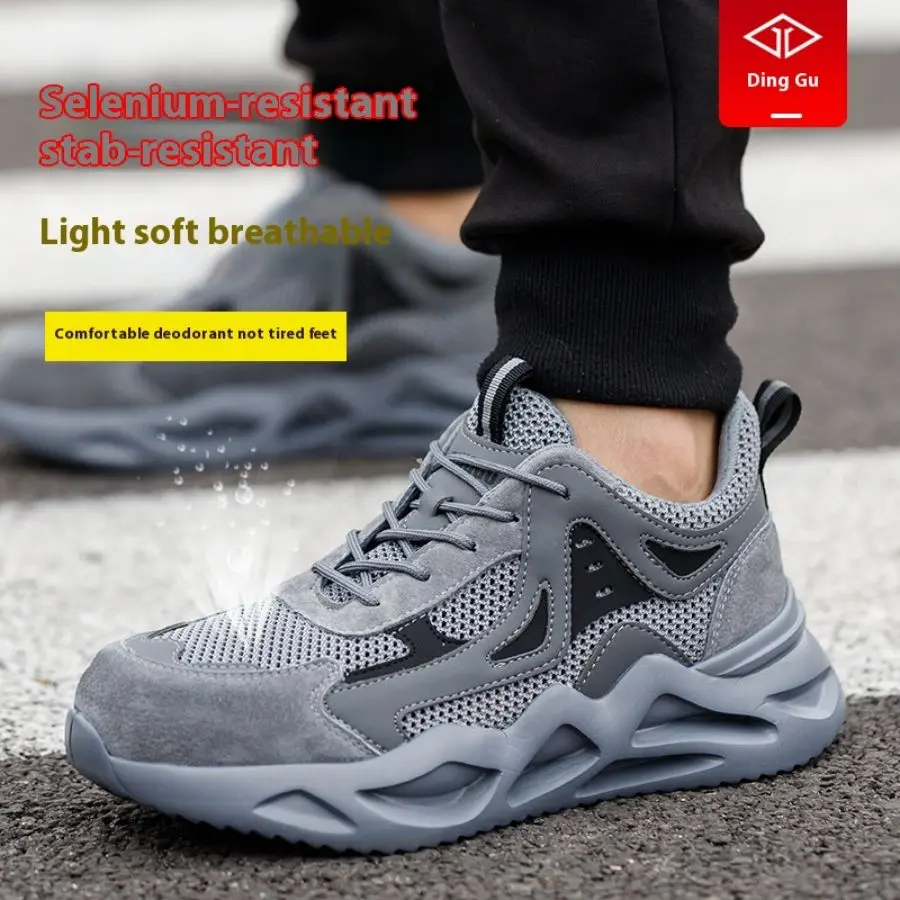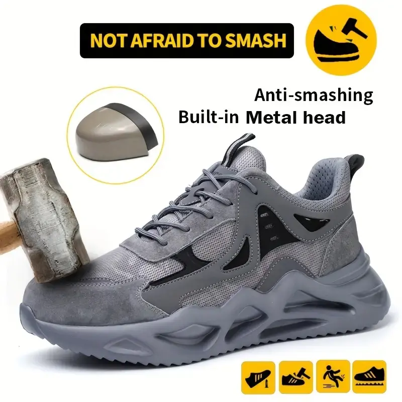 5. Not Afraid to Smash Men's Steel Toe Sports Non-Slip Work Shoes Grey Closed Breathable Mesh Anti-Smashing Anti-Piercing Shock-Absorbing Wear-Resistant Soft & Light Father's Day Gift Worker Footwear