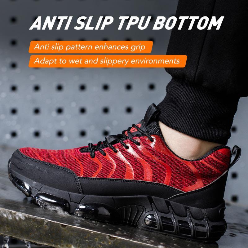 Our steel toe sneakers have a no-slip design, offering excellent traction on various surfaces. They provide enhanced stability, preventing accidents and injuries. 🏃♂️