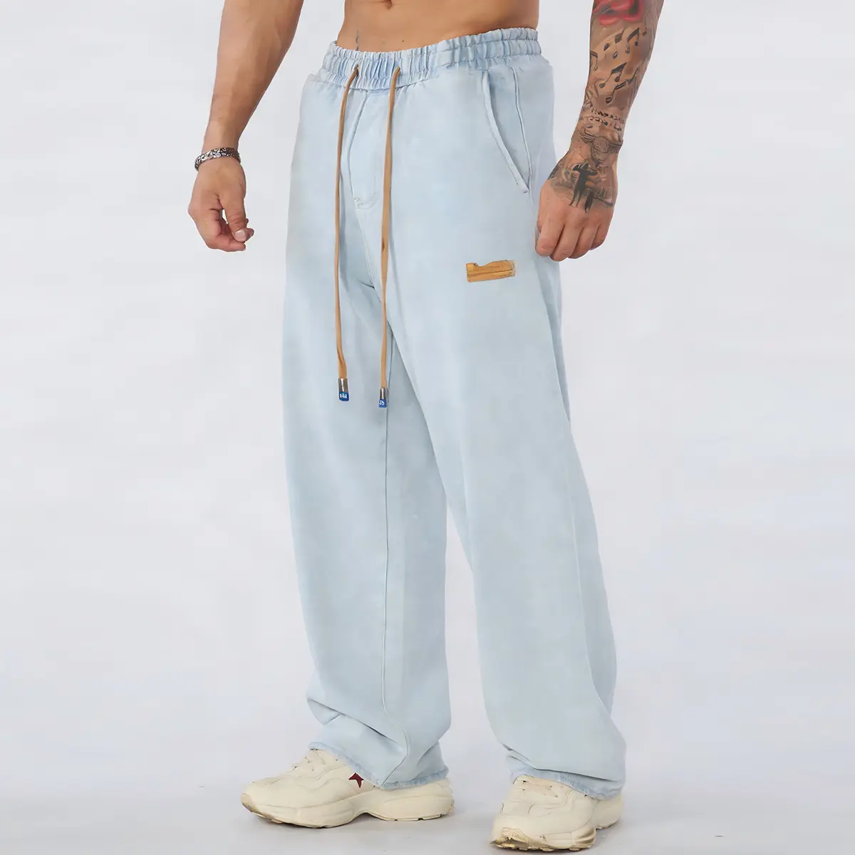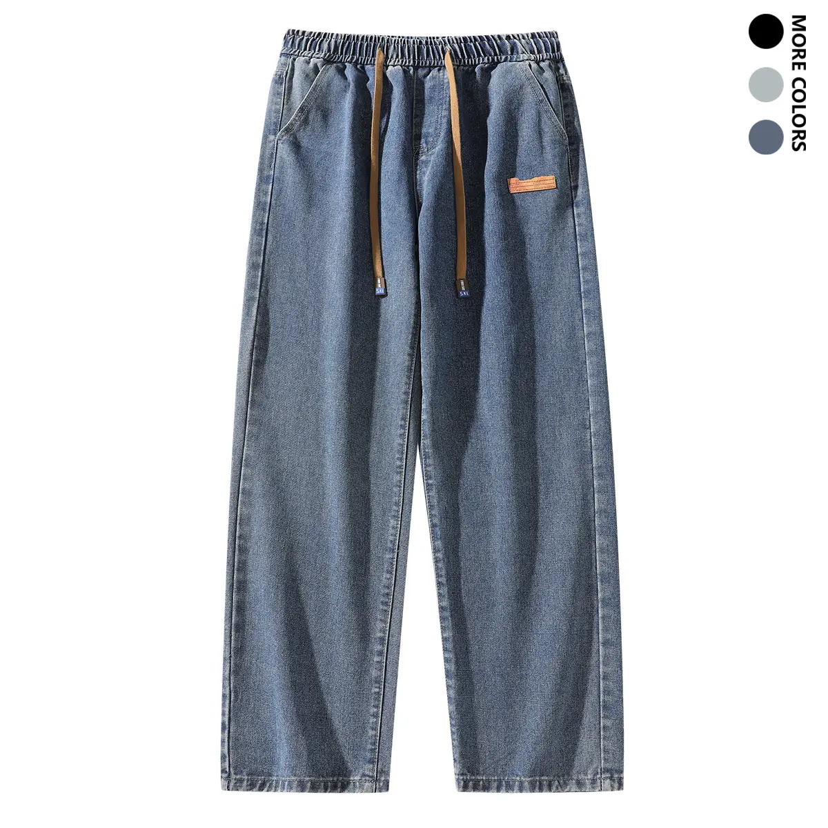 Grand Opening — Men’s Straight-Leg Jeans, Casual Drawstring Elastic Waistband, Heavyweight Washed Denim, Premium Cotton-Rich Blend Fabric with at least 60% cotton Beige Menswear baggy jeans for men Aesthetic