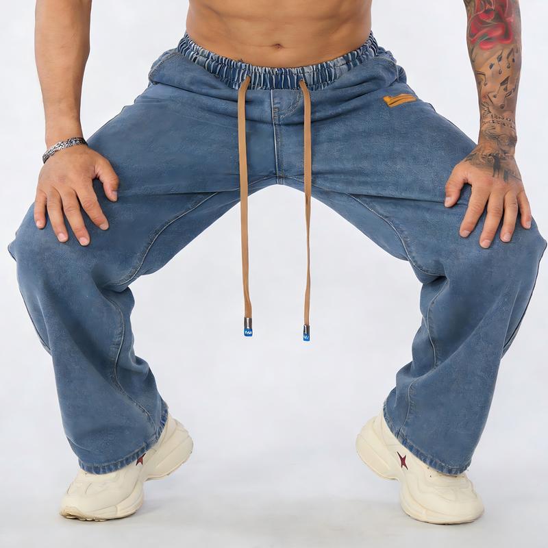 Grand Opening - Men's Straight Jeans, Casual Drawstring Elastic Waist, Denim Pants, Heavyweight Washed Jeans, Premium Blended Elastic Fabric with 72% Cotton