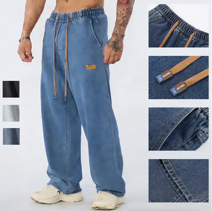 Men’s Wide-Leg Denim Jogger Pants – Relaxed Fit Streetwear Style #DenimJoggers #StreetwearMen #BaggyJeans