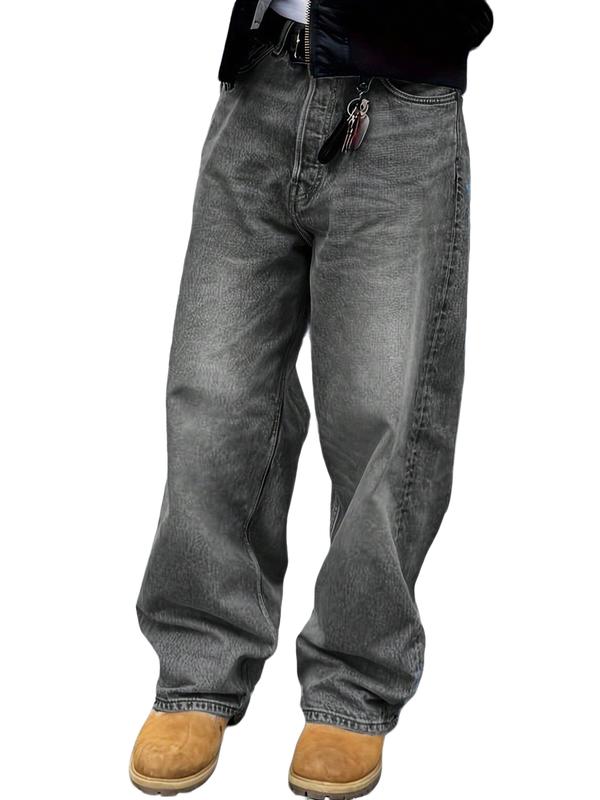 Men's Straight Leg Denim Jeans, Street Style Loose-Fit Casual Pants, All Season Fashionable High-Street Long Trousers
