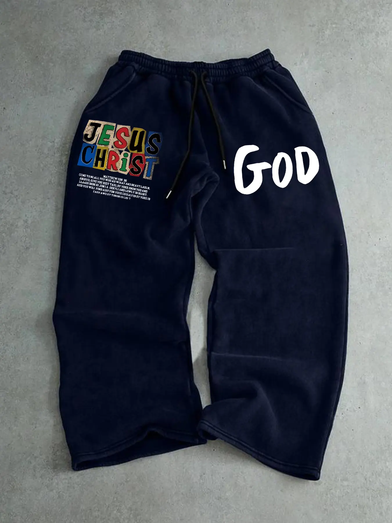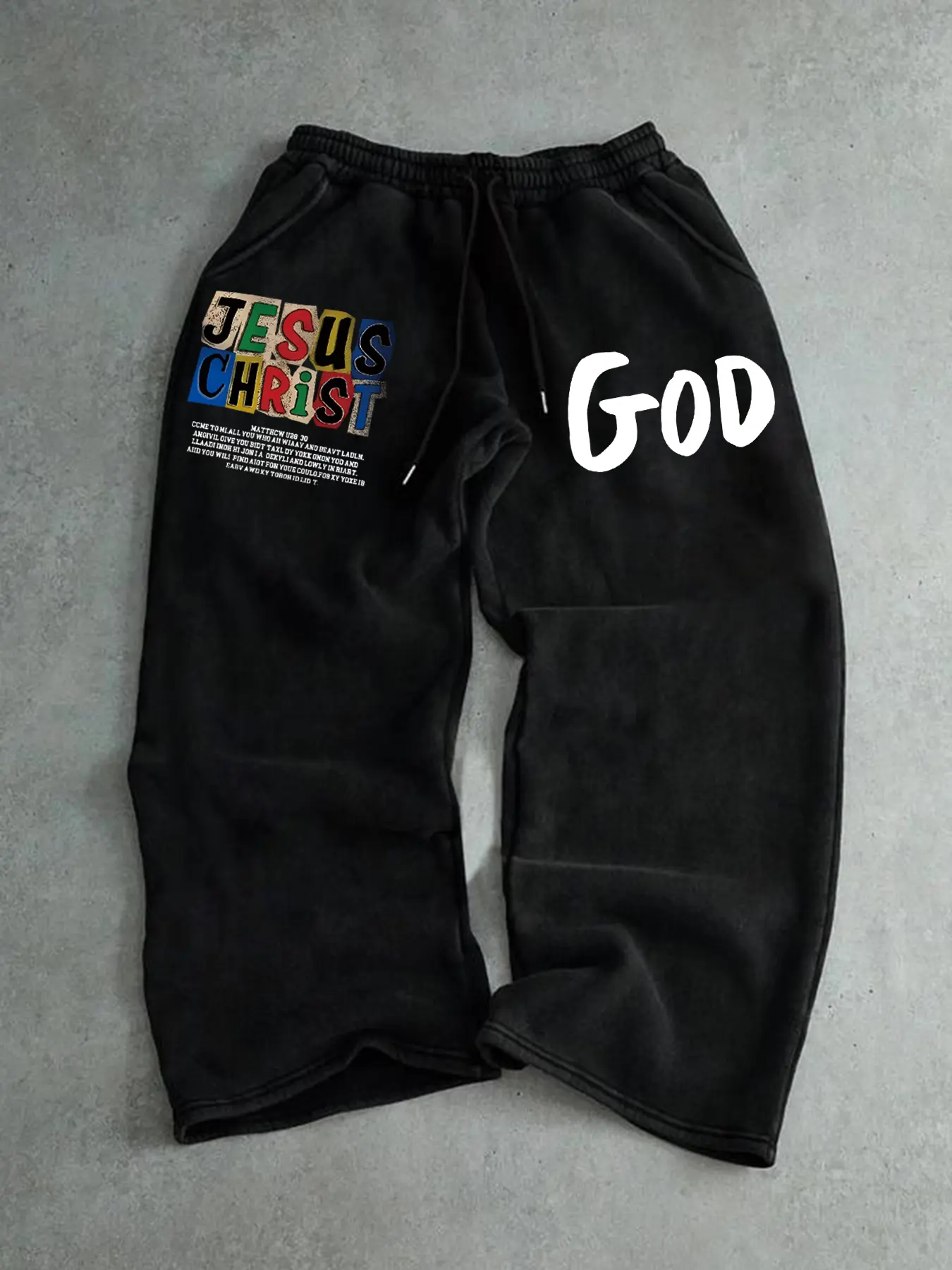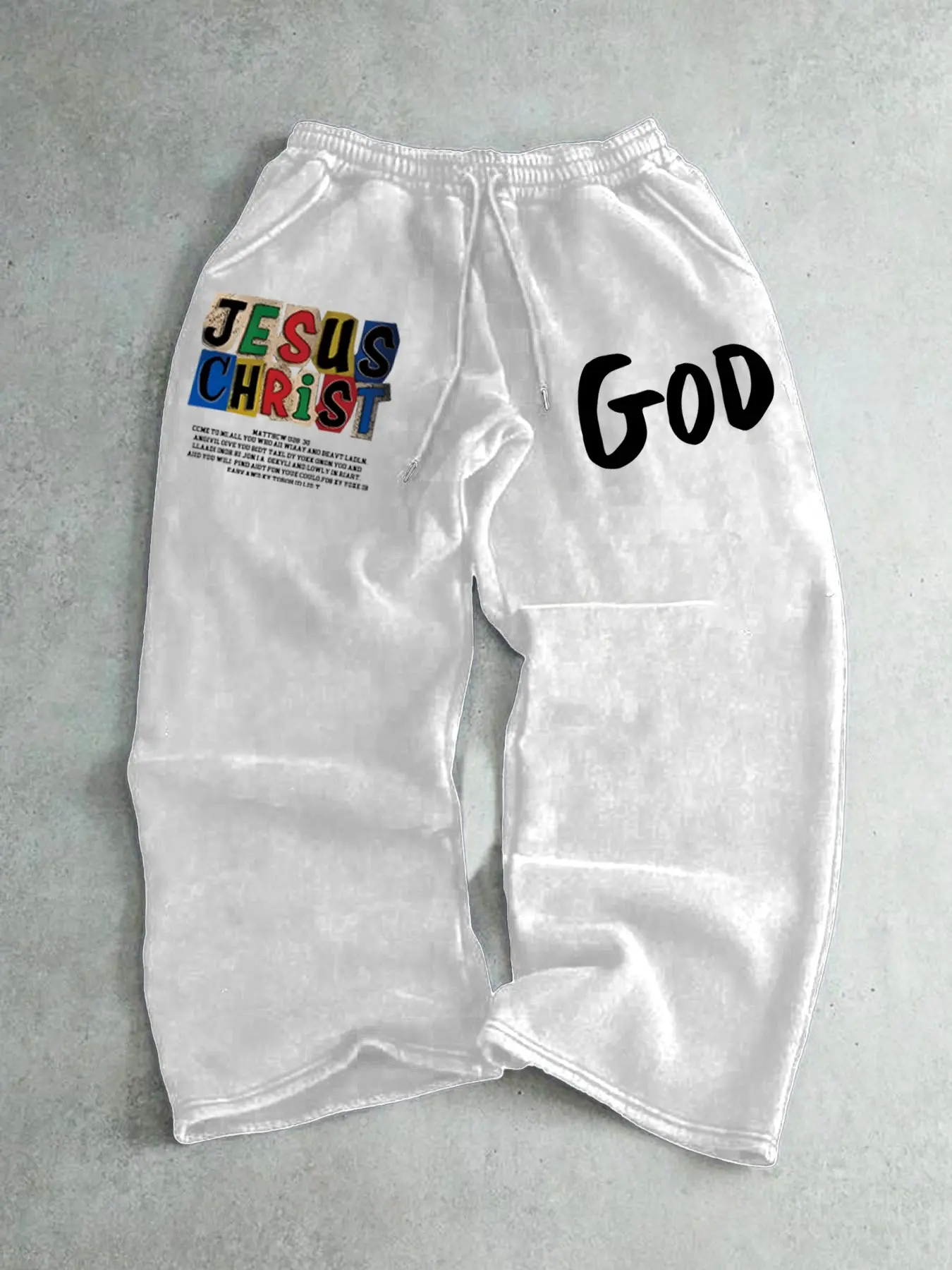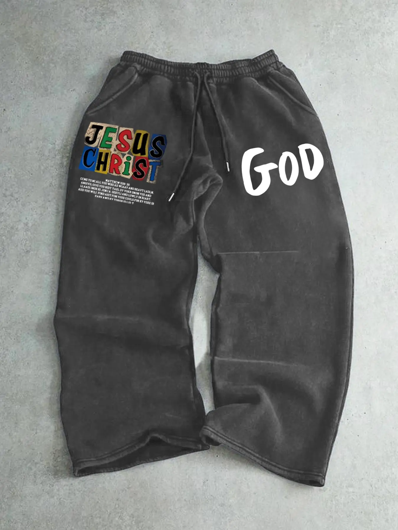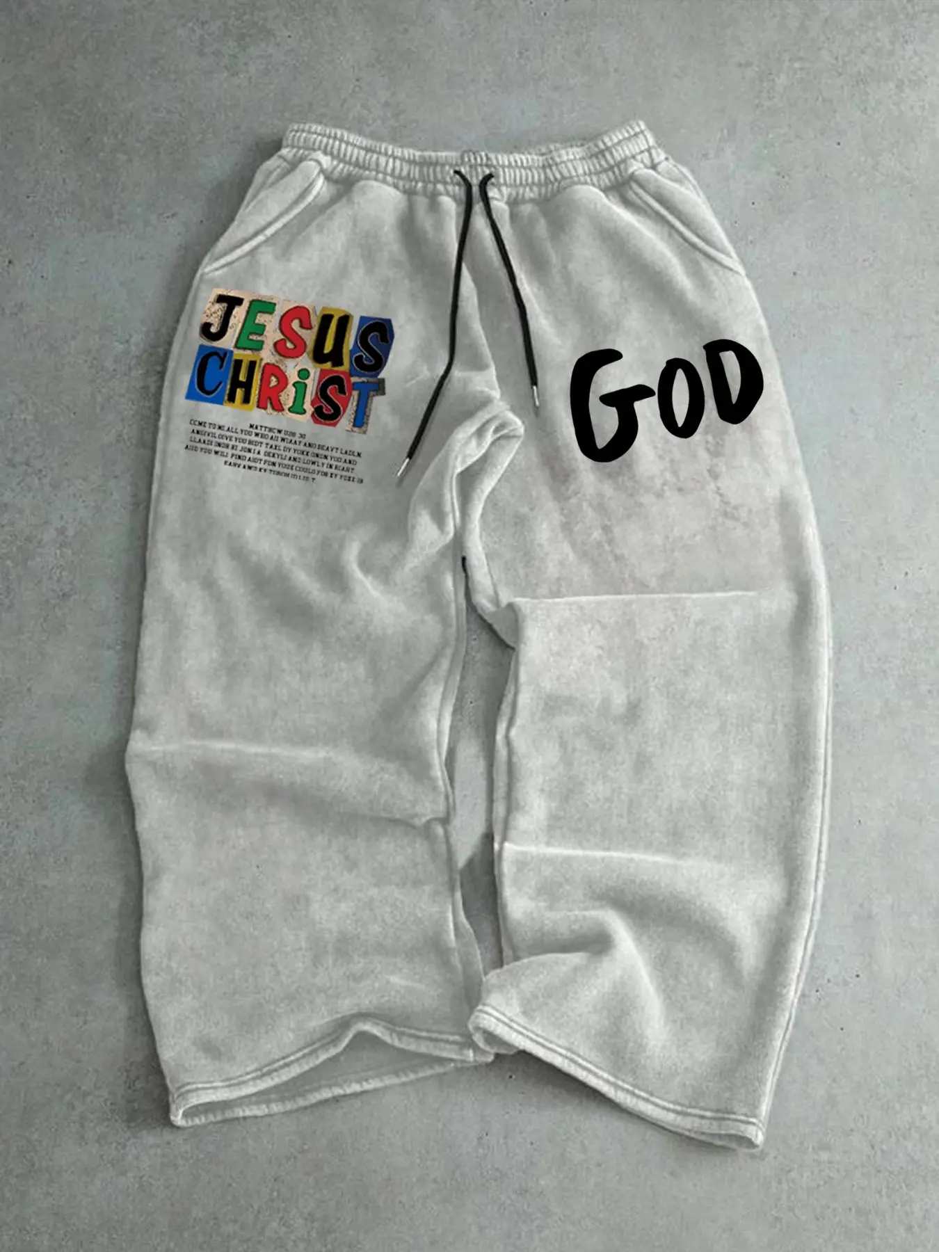 【Letter Print】: The unique 'JESUS' letter print adds a statement-making touch, distinguishing these pants from others in the market.