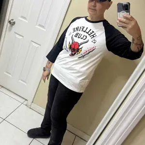 It's D&D night in Hawkins, Indiana and it's time to roll the dice with Eddie Munson and his infamous Hellfire Club with this officially licensed Stranger Things Season 4 Men's Hellfire Club Costume Graphic Baseball Tee! Your favorite 1980s-inspired Netflix television series has never looked as good as this awesome raglan tee with 3/4 length sleeves inspired by the Hellfire Club's baseball tee that showcases dice, swords, and a horned demon across the front, for that perfect heavy metal style! Eddie thinks this baseball tee is "very metal" and he can't wait for you to shred with his band, the Corroded Coffin, while rocking this epic costume tee.