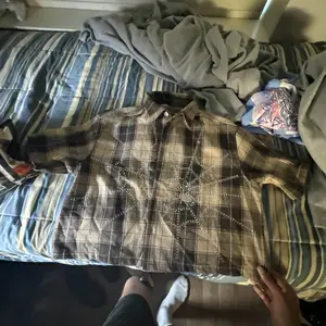 I’m 5’4 wearing a S #croppedshirt #plaidshirt #rhinestoneshirt #spiderweb #streetwear