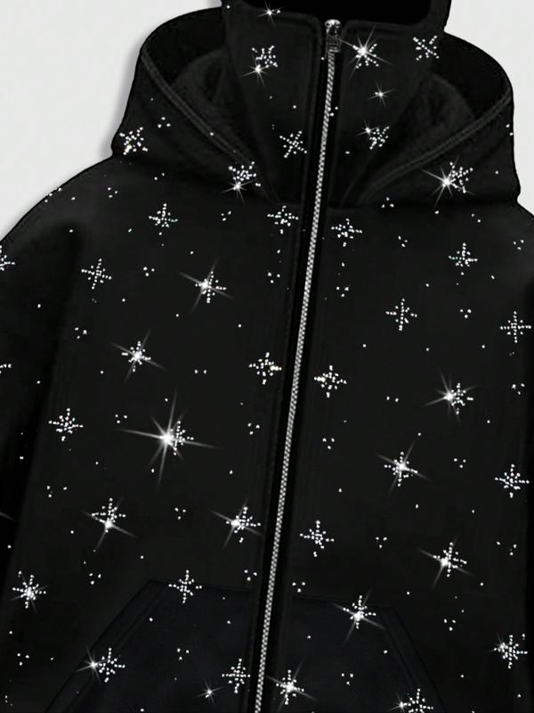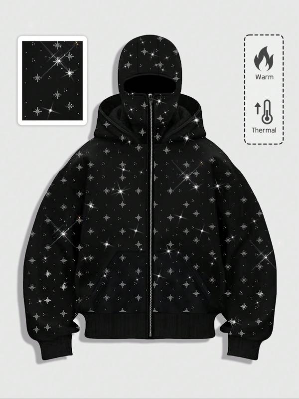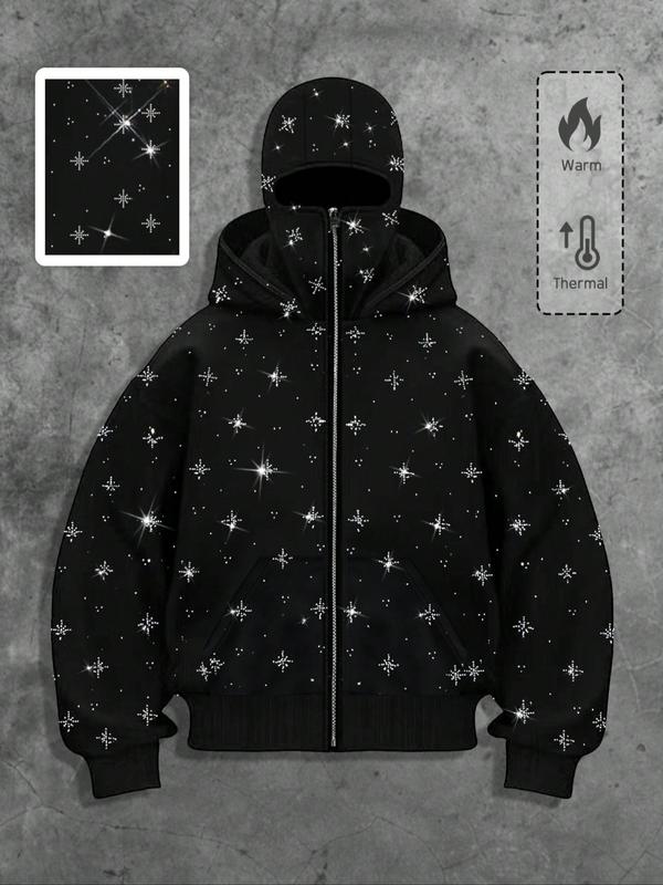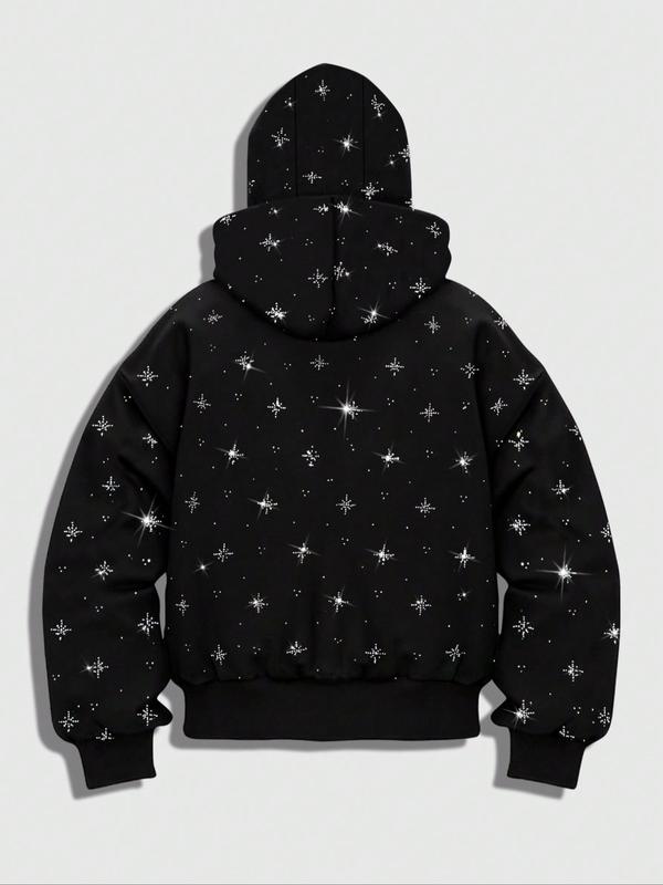 Men's Street Style Rhinestone HooMen's Street Style Rhinestone Hooded Sweatshirt, Pocket and Zip Design, Fall & Winter Wear, Geometric Pattern, Fitted Fitded Sweatshirt, Pocket and Zip Design, Fall & Winter Wear, Geometric Pattern, Fitted Fit