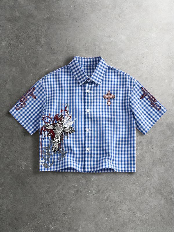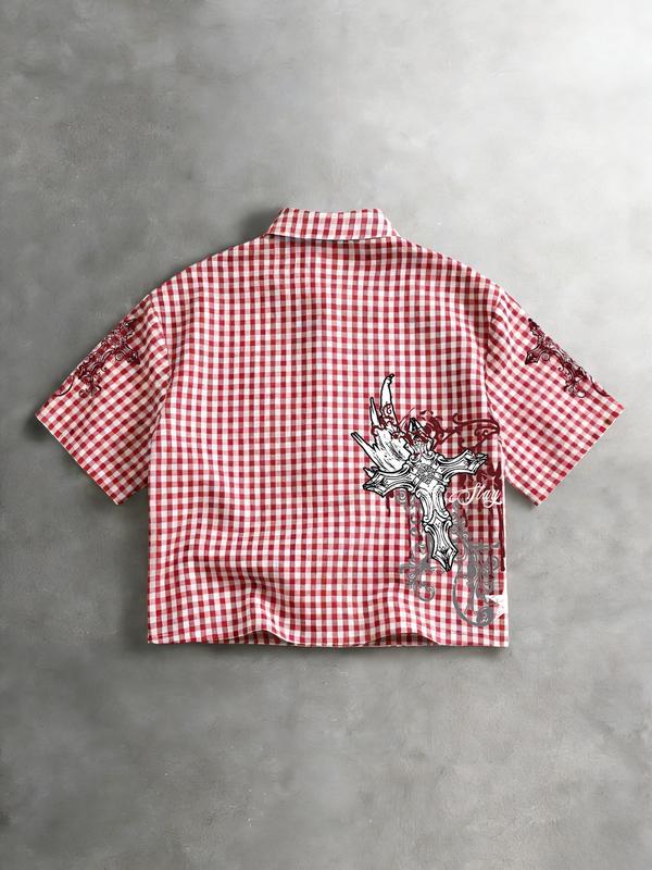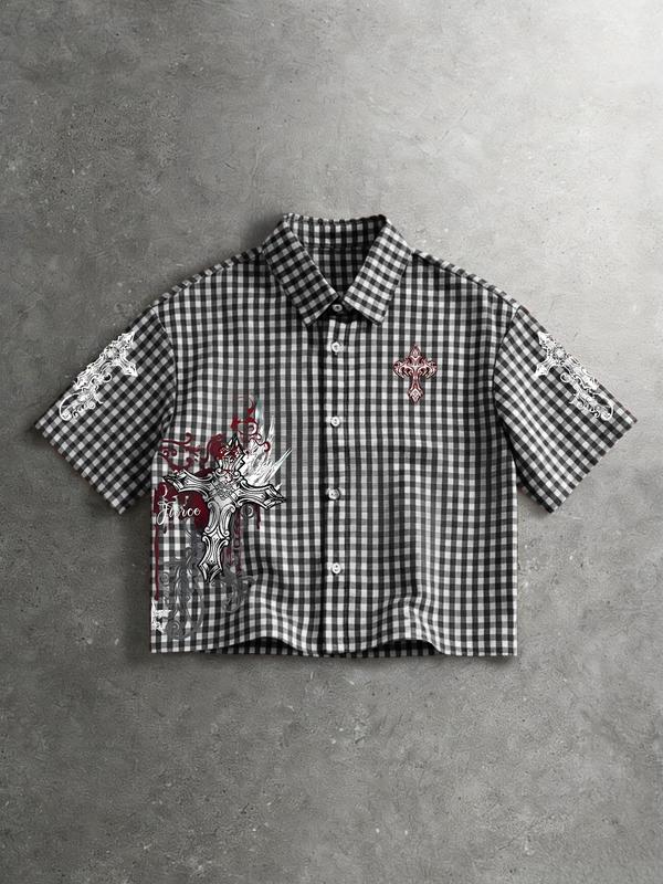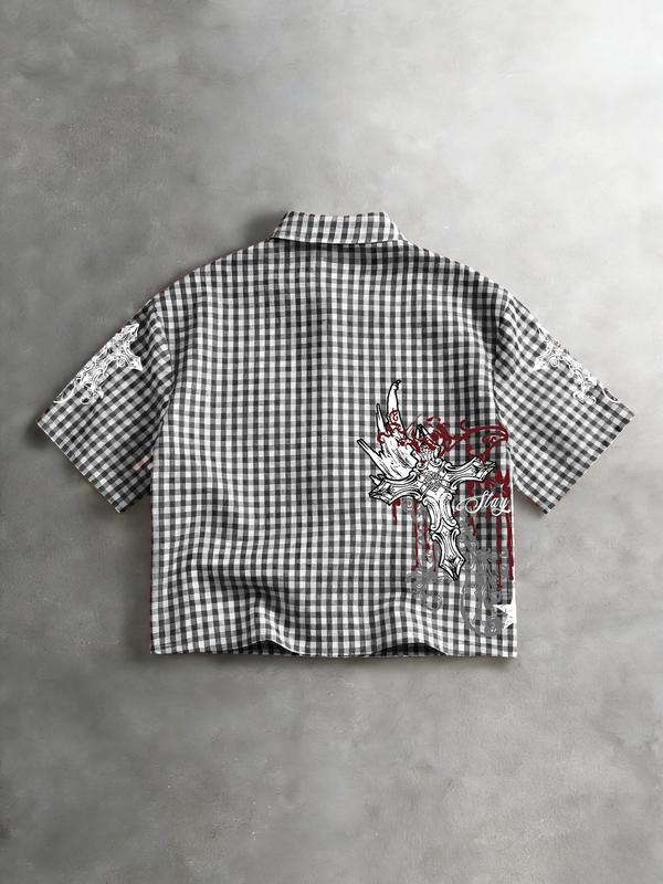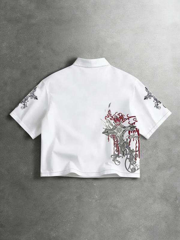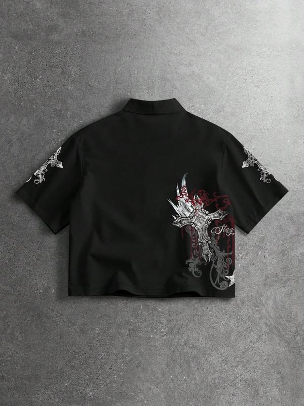 Men's Street Style Single-Breasted Short Sleeve Casual Shirt Y2K, All over Print, Fashionable Summer Wear, Comfortable Fit