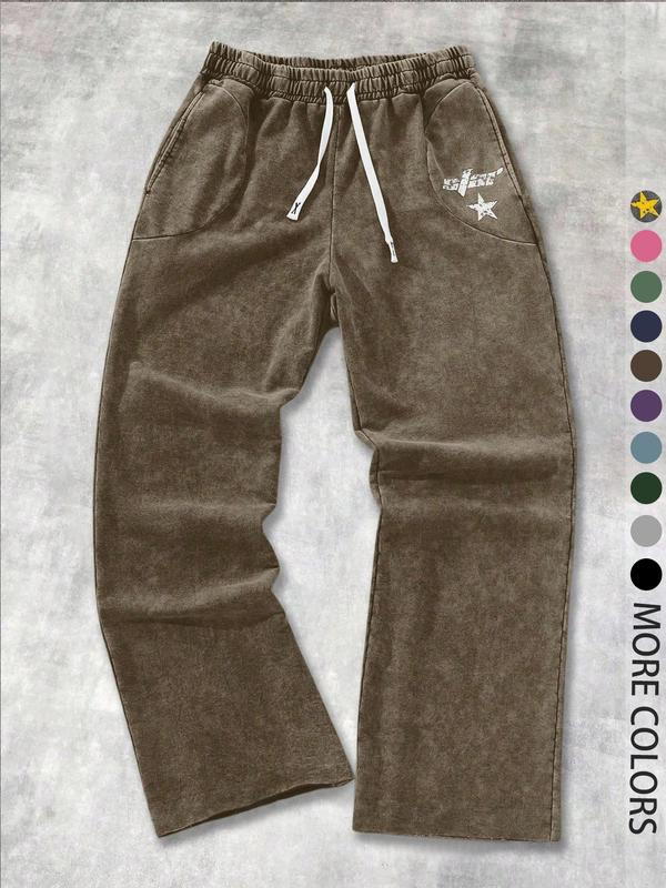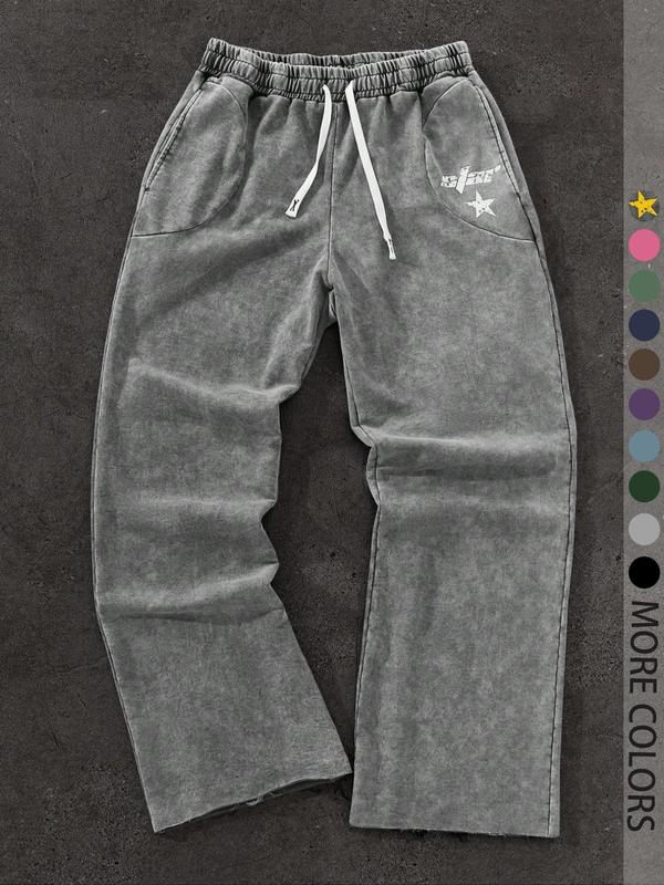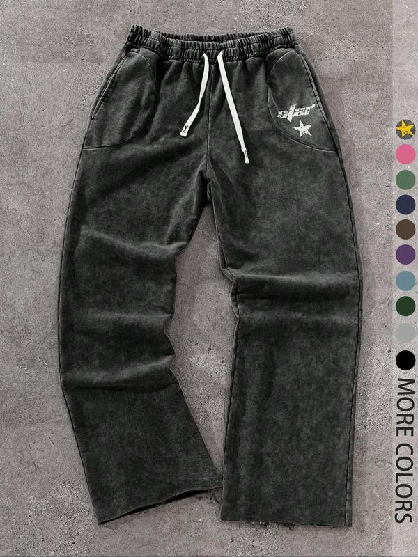 Men's Streetwear Cotton Joggers, Loose Fit Elastic Waist Knit Pants, Washed Fabric with Vintage Details, Casual Fashion for Daily Wear