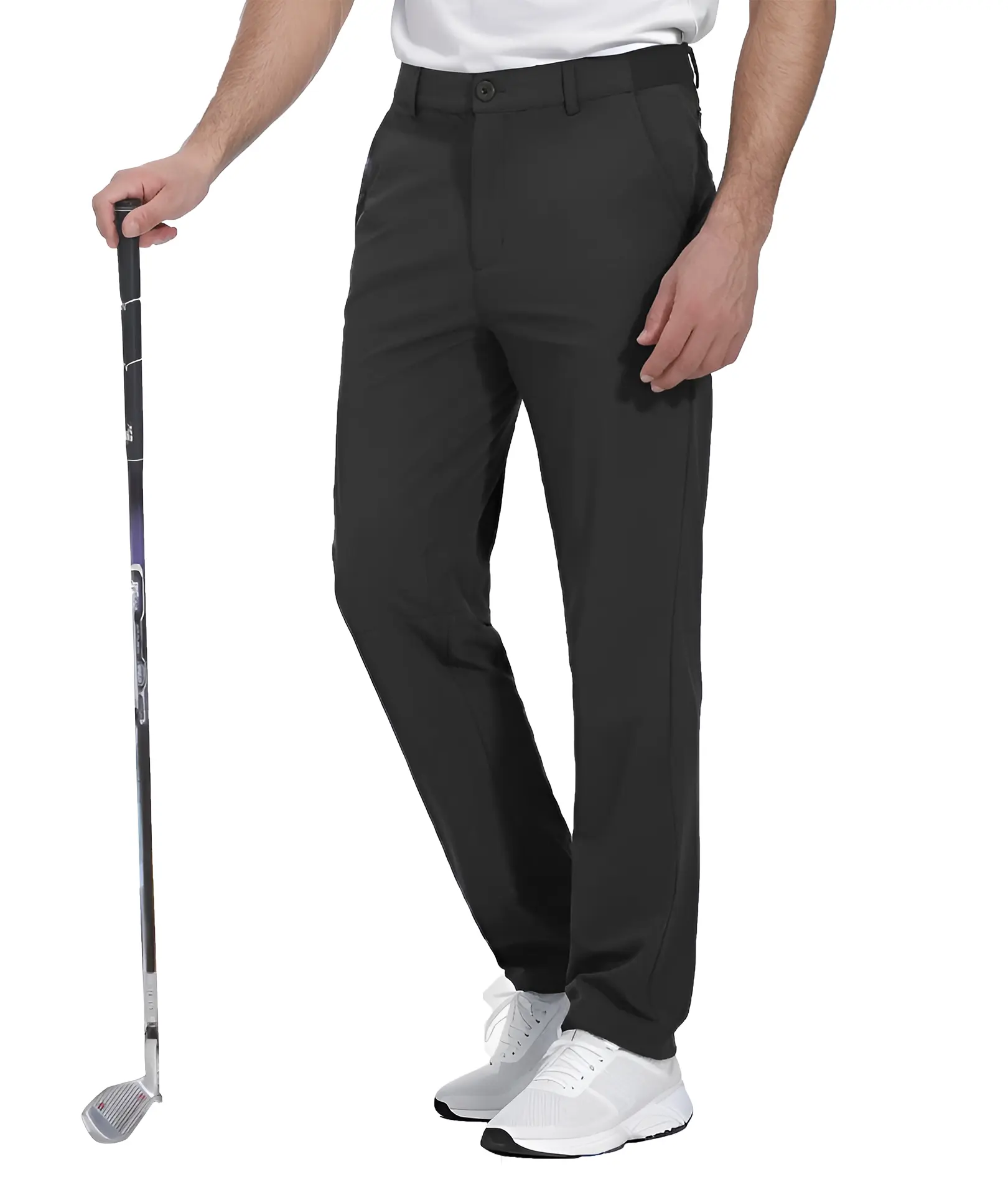 ·Features: Stretch men's golf trousers with a fitted shape, lightweight, quick drying, waterproof, solid colour. Straight legged trousers with a cinched waist. Two slanted front pockets and one zip back pocket for storage. Overall aesthetically pleasing design coupled with a mature and stable style that shows off masculinity. A must-have item in men's wardrobe.
