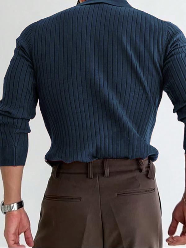 Men's Striped Polo Shirt with Ribbed Collar, Long Sleeve Casual Work Polo, Perfect Gift for Friends, Stylish Men's Clothing