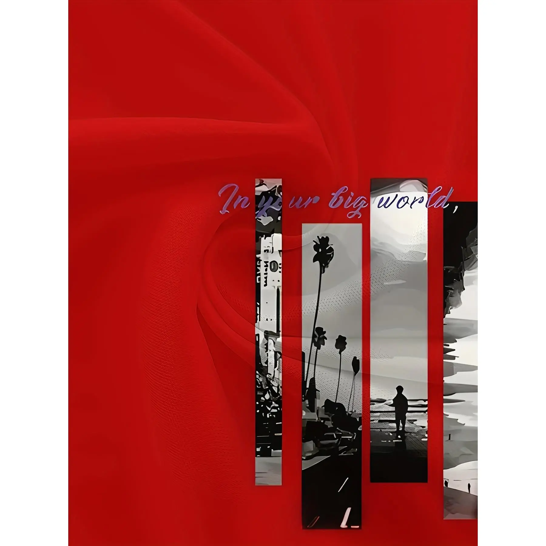 Red base + black-and-white fragments—“being alone in the crowd” is printed on this tee #videowave #fyp #shirt #trendy #tshirt